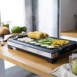 Piastra grill elettrica da 2000 W, con struttura dal design esclusivo e con rifiniture in acciaio inossidabile. Termostato regolabile e piastra antiaderente, rivestimento RockStone e lavabile in lavastoviglie.