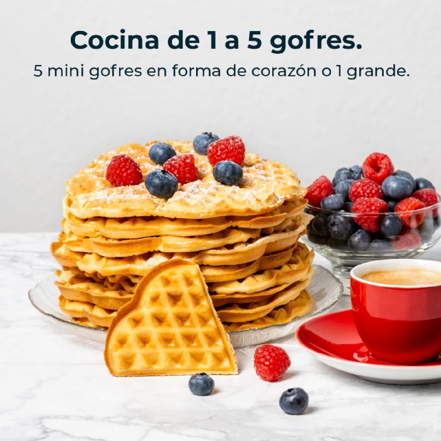 Da 1 a 5 waffle: prepara fino a 5 waffle a forma di cuore alla volta o 1 waffle grande.