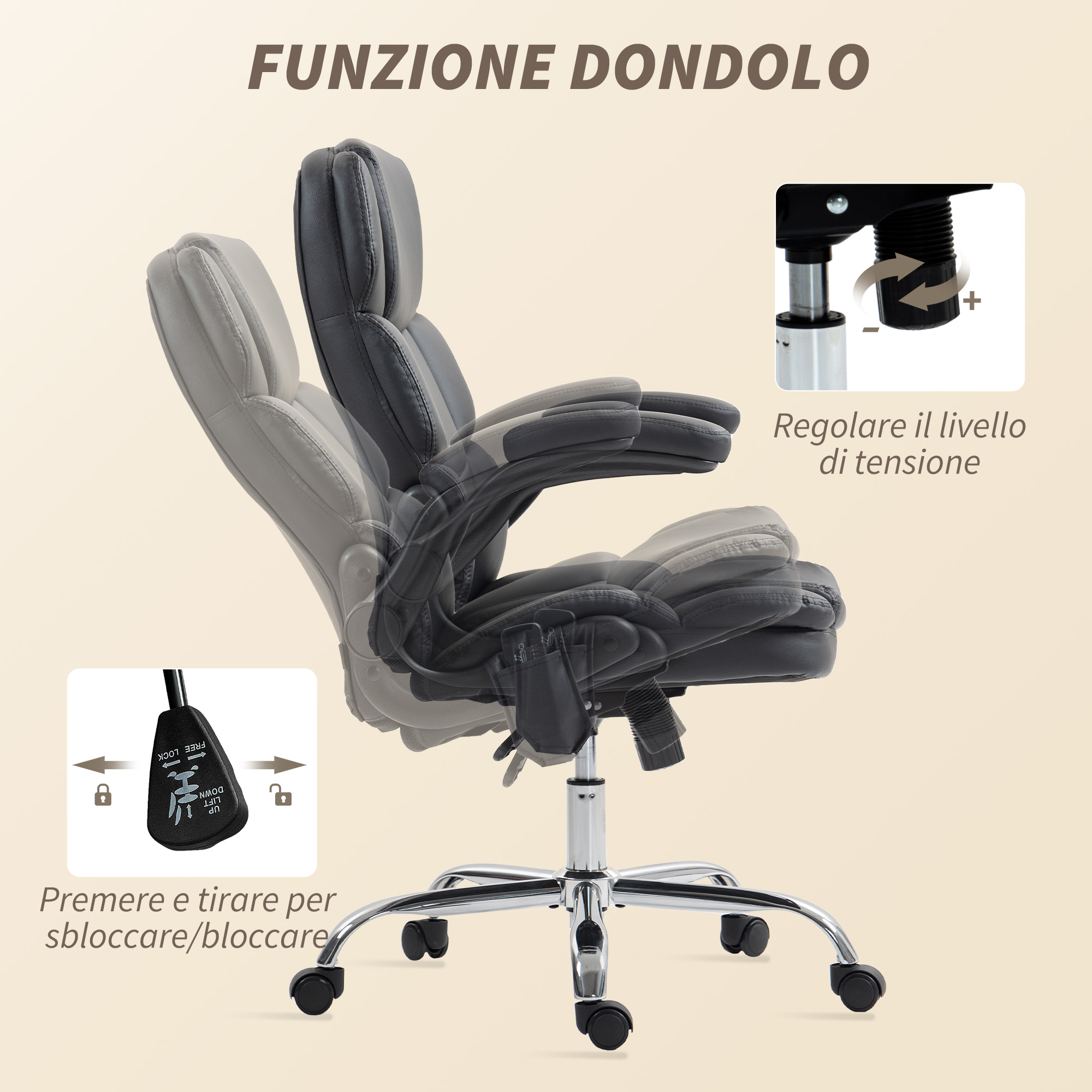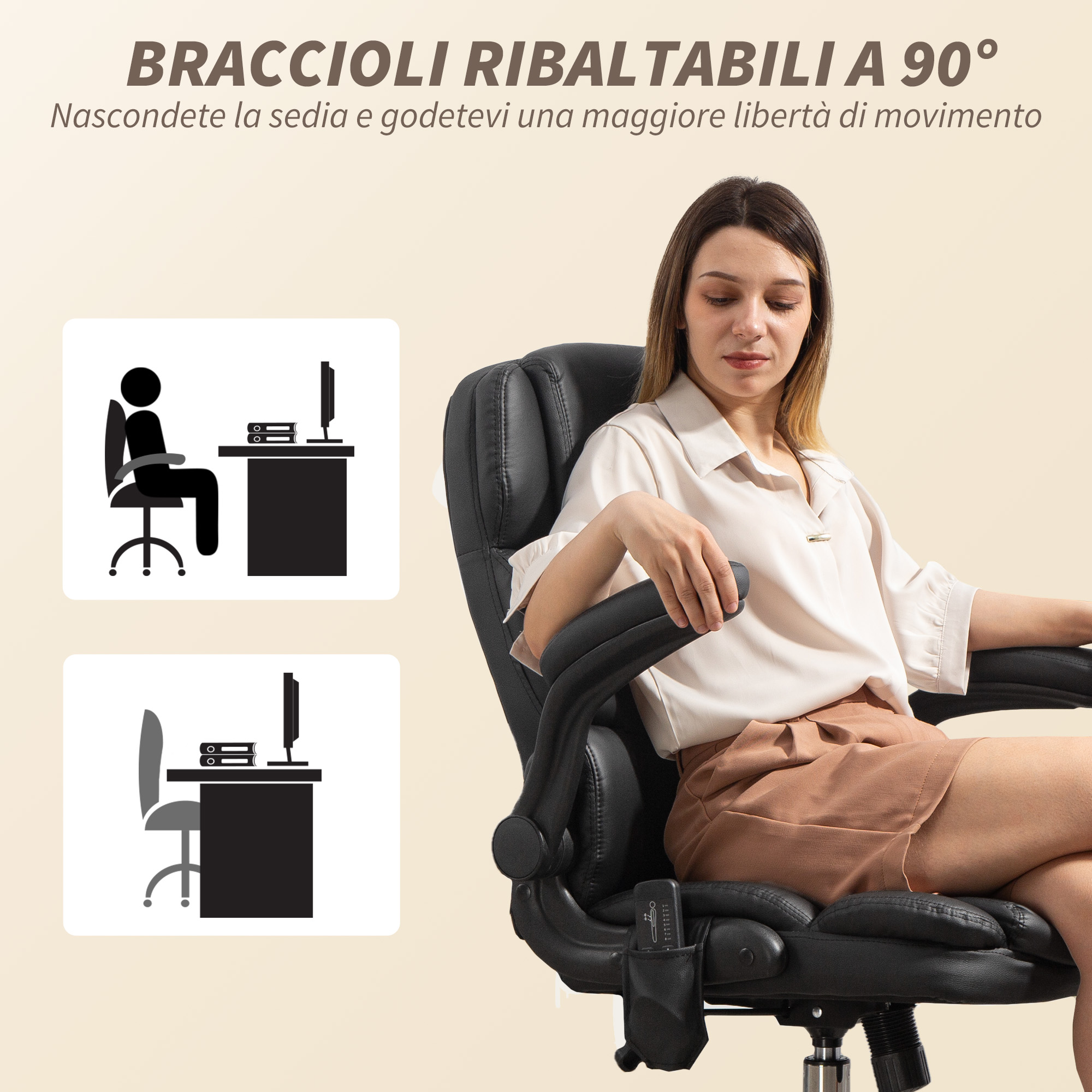 Poltrona da Ufficio Massaggiante a 4 Punti con Riscaldamento e Braccioli Ribaltabili, Nero
