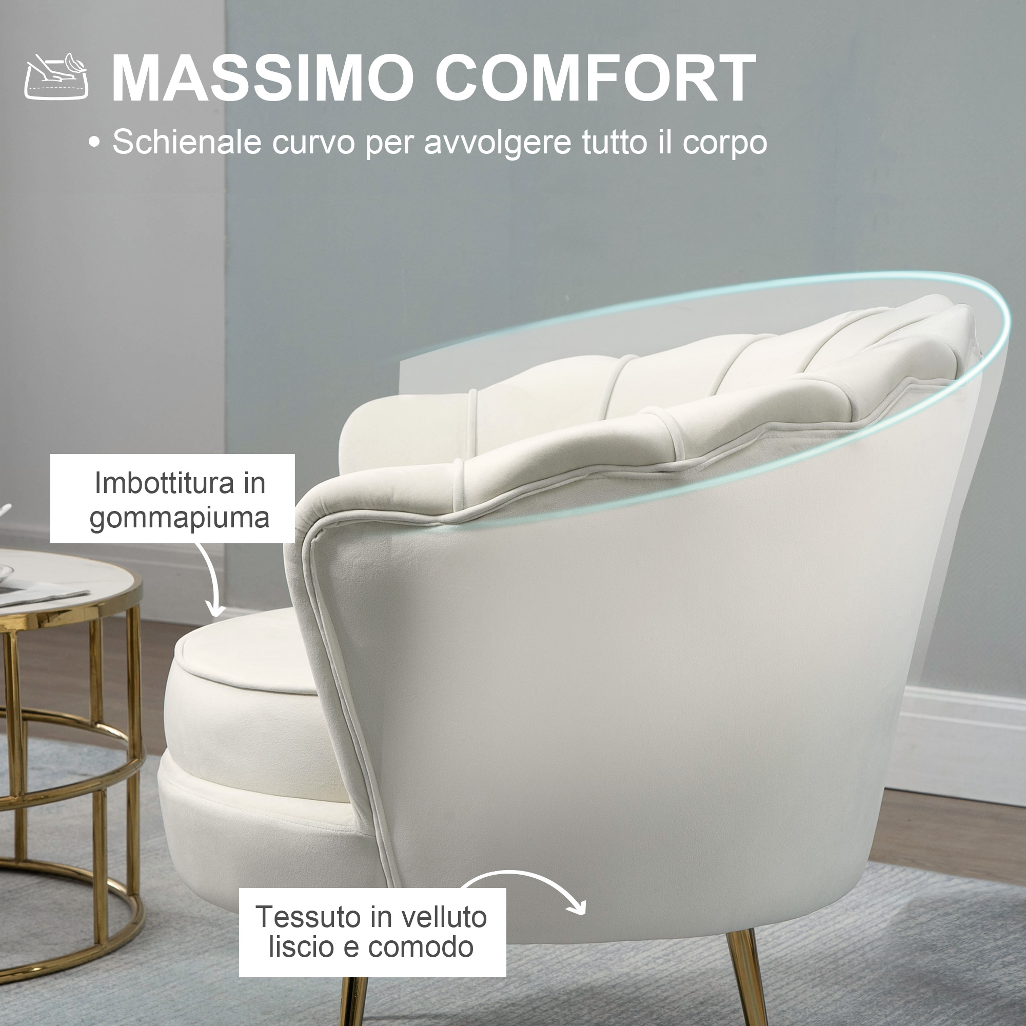 Poltrona di Design Stile Vintage Imbottita in Velluto, 79x77x77cm, Crema