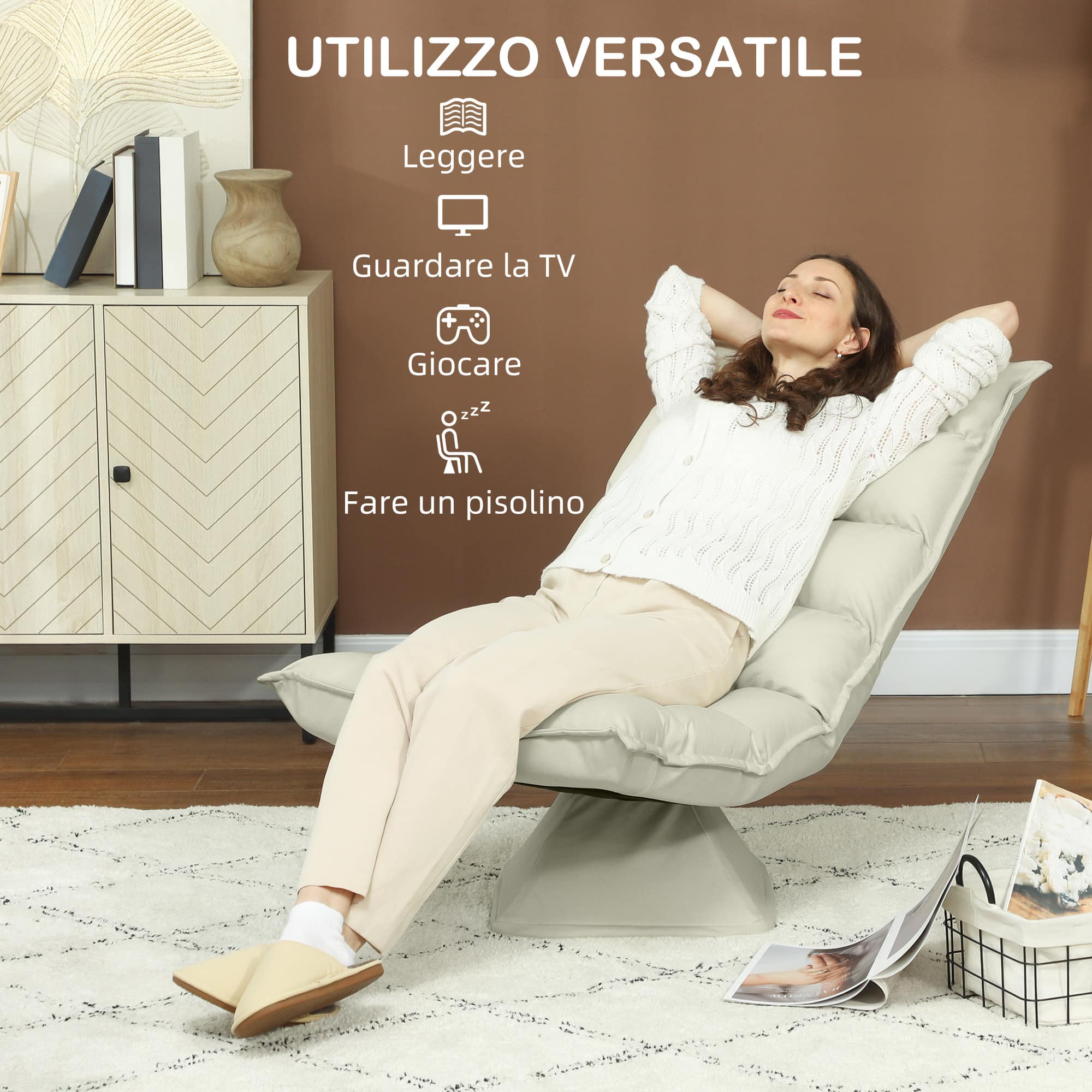 Poltrona in Tessuto Imbottita Girevole a 360° e Reclinabile a 3 Livelli 62x70x95cm, Beige