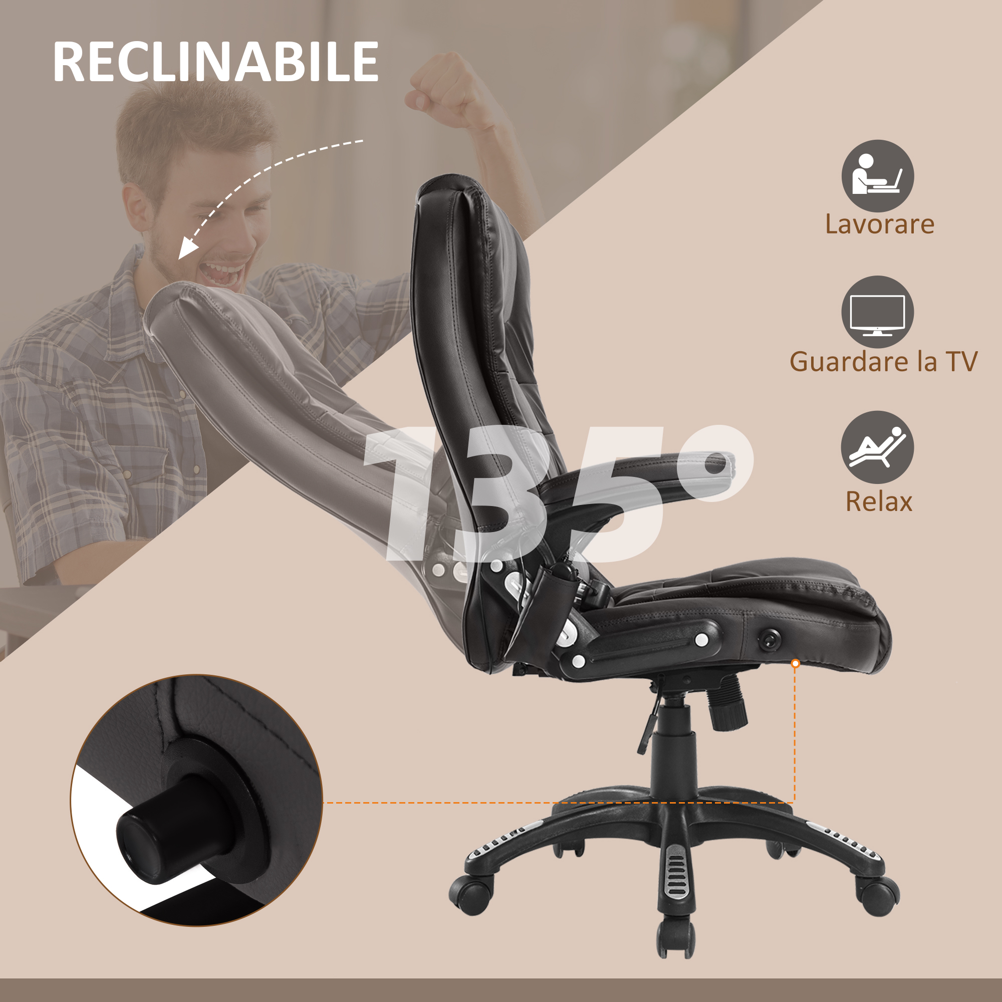 Poltrona Massaggiante da Ufficio ad Altezza Regolabile con 6 Punti Massaggianti, in PU, 62x68x111-121 cm, Marrone