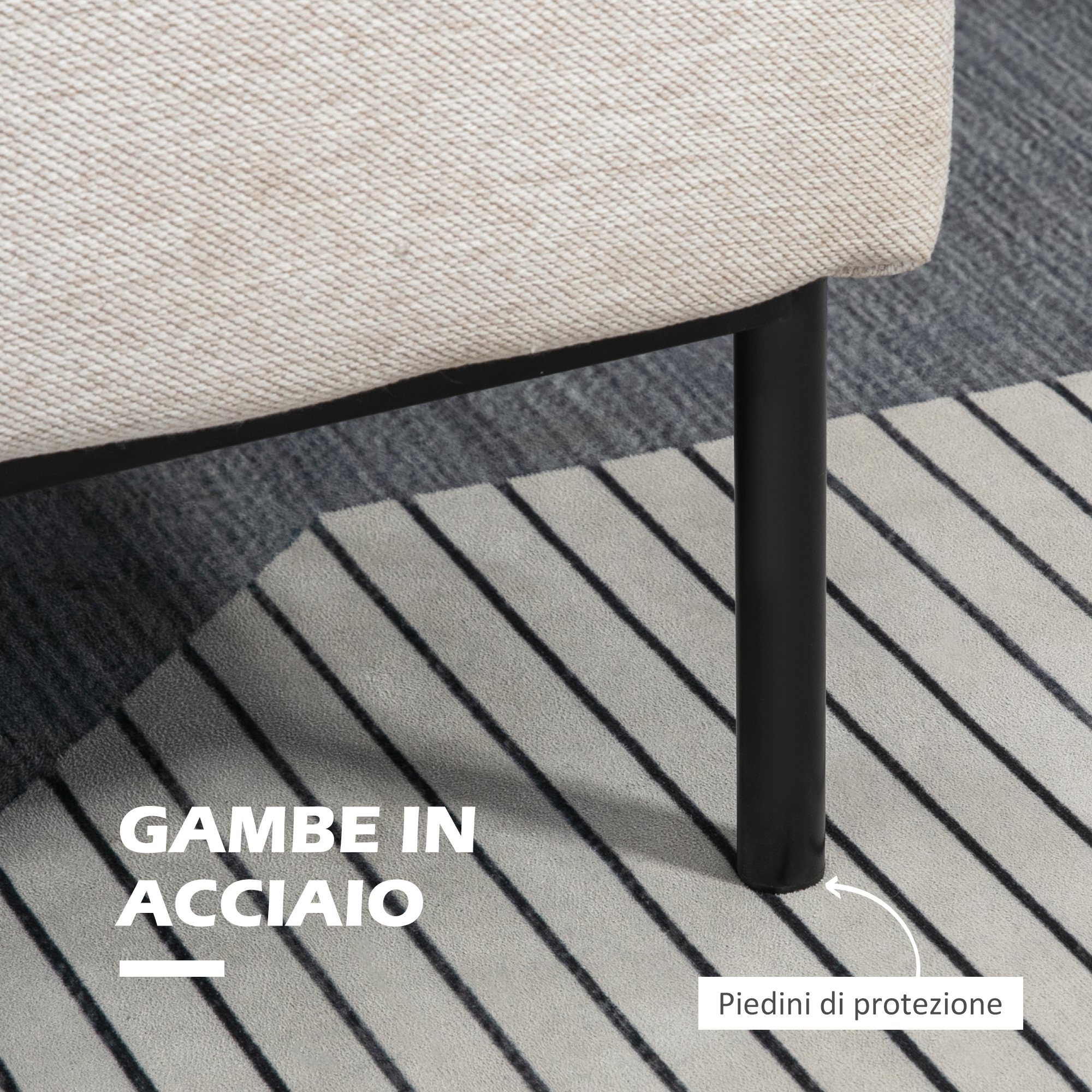 - • Materiale: Tessuto effetto lino (1% poliestere), schiuma, acciaio, pannello multistrato