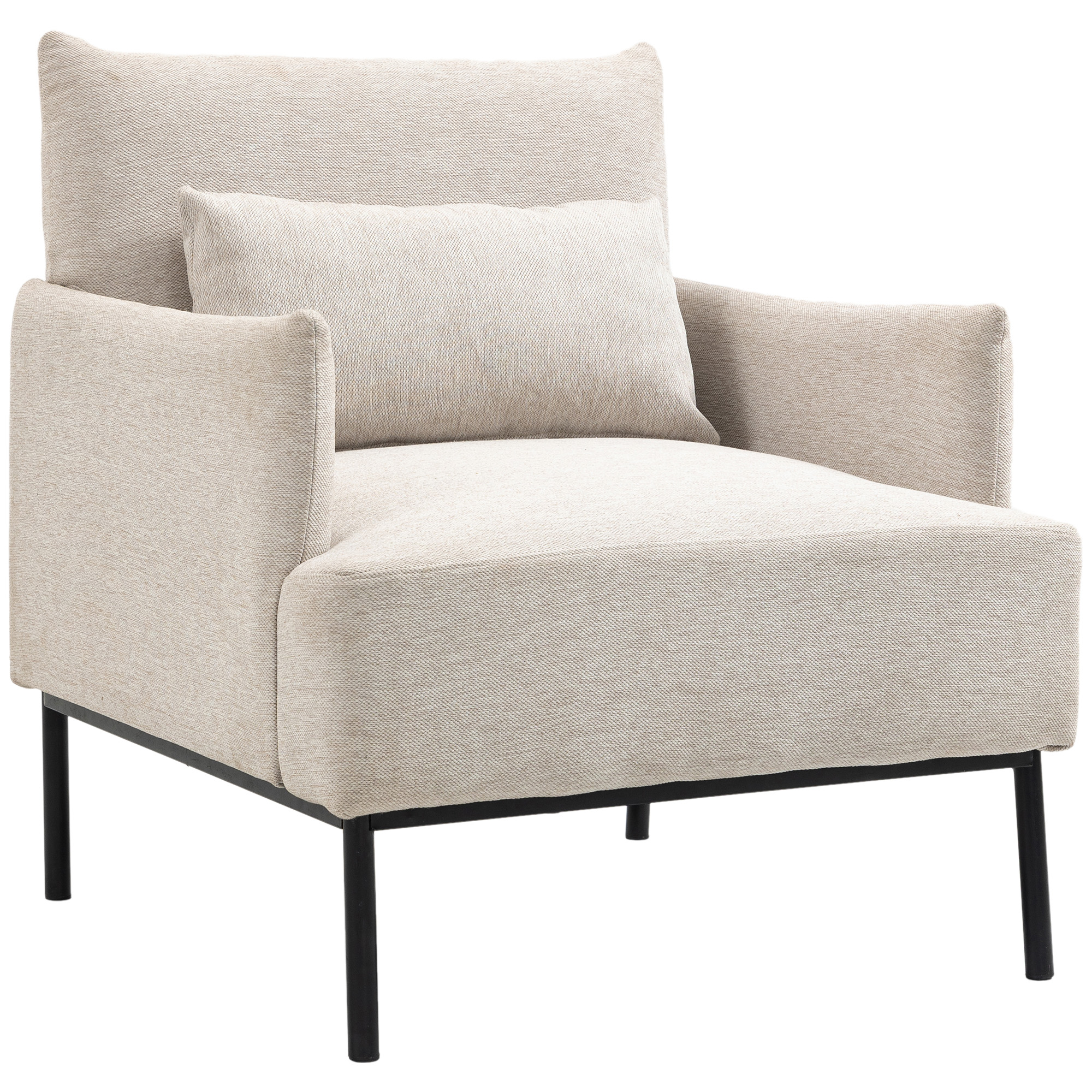 Poltrona Moderna d’Arredo con Cuscino Extra, in Tessuto Effetto Lino e Acciaio, 73x81x82 cm, Bianco Crema