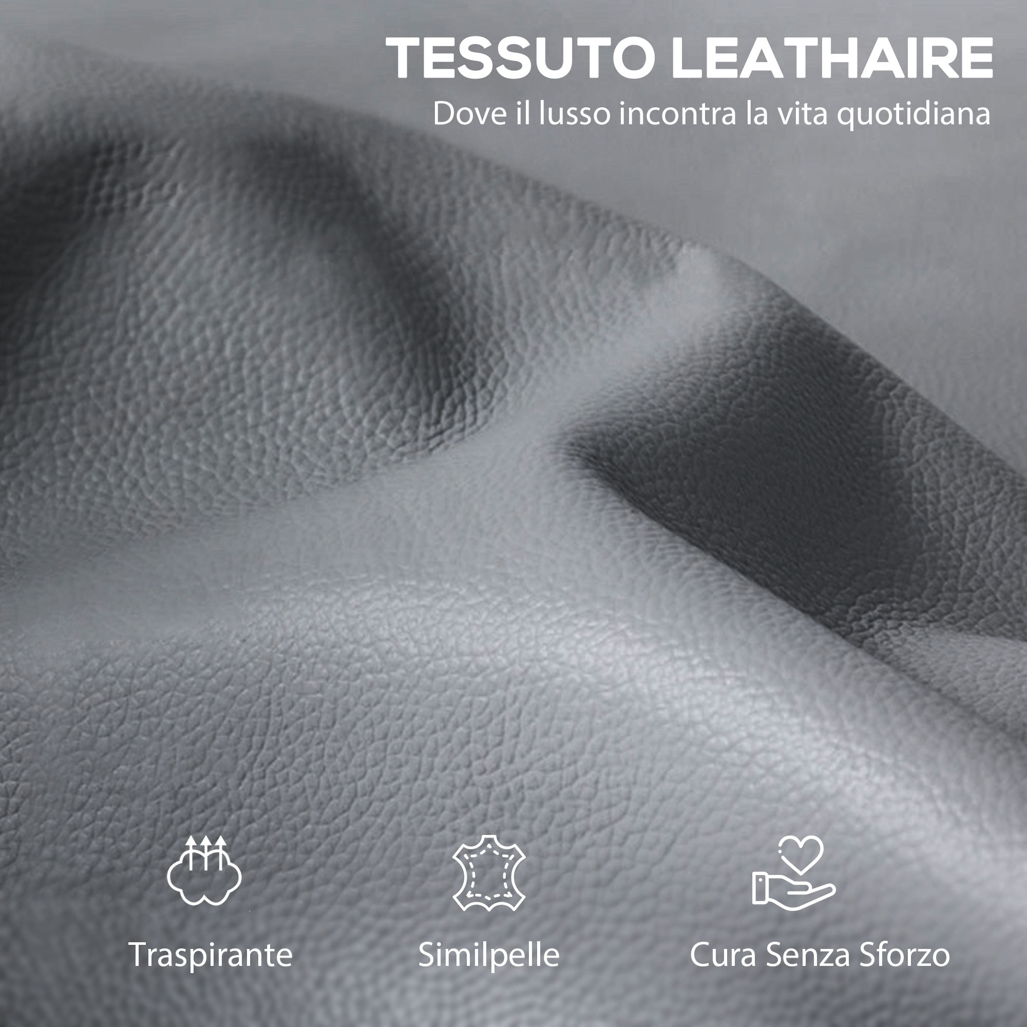 - • Il tessuto effetto pelle è traspirante, morbido e resistente agli schizzi, oltre ad essere elegante