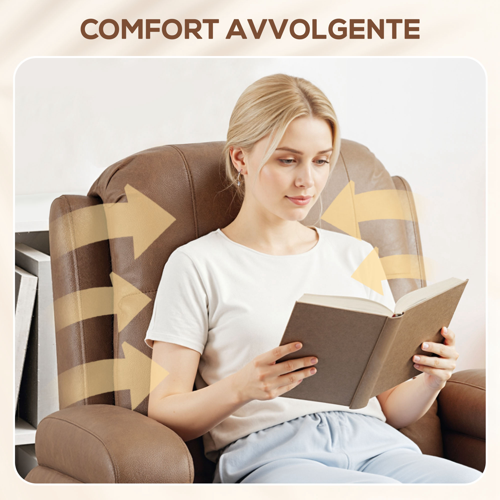 Poltrona Relax Reclinabile Massaggiante Riscaldante in Similpelle con 8 Punti Massaggio, Marrone