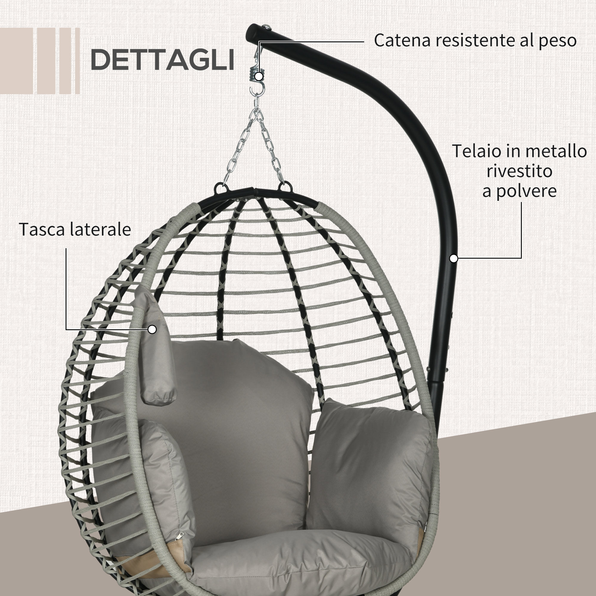 - • Poltrona sospesa adatta per interno ed esterno