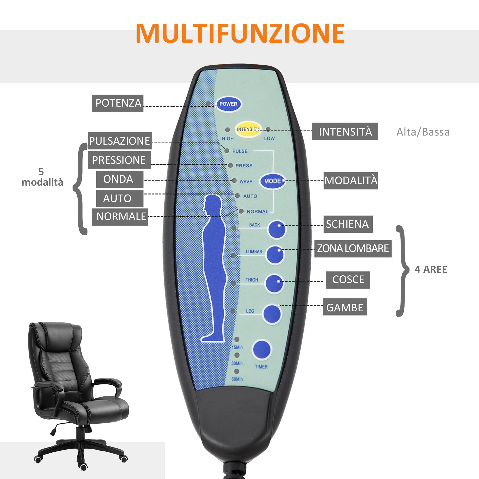 Poltrona Ufficio con 6 Punti Massaggianti e Altezza Regolabile, Ergonomica e Schienale Inclinabile, in Semilpelle, Nero | Aosom Italy
