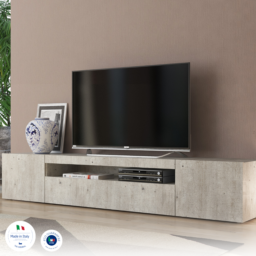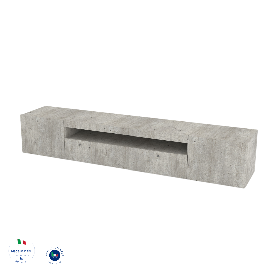 Porta tv DAIQUIRI 200 cm 2 ante battenti + 1 anta a ribalta Cemento