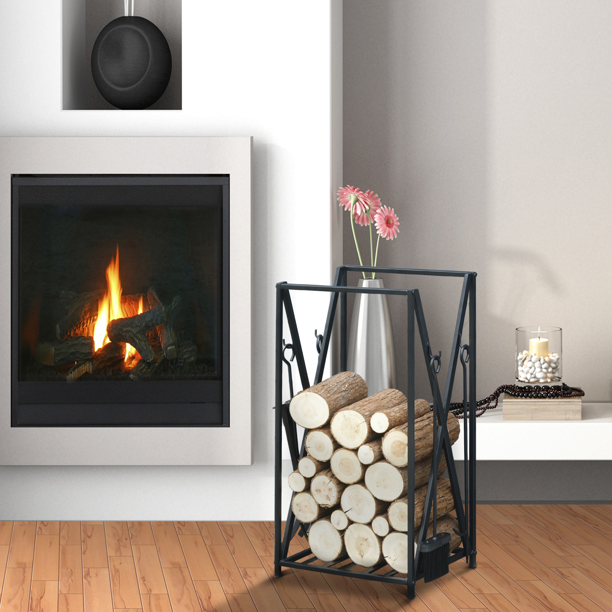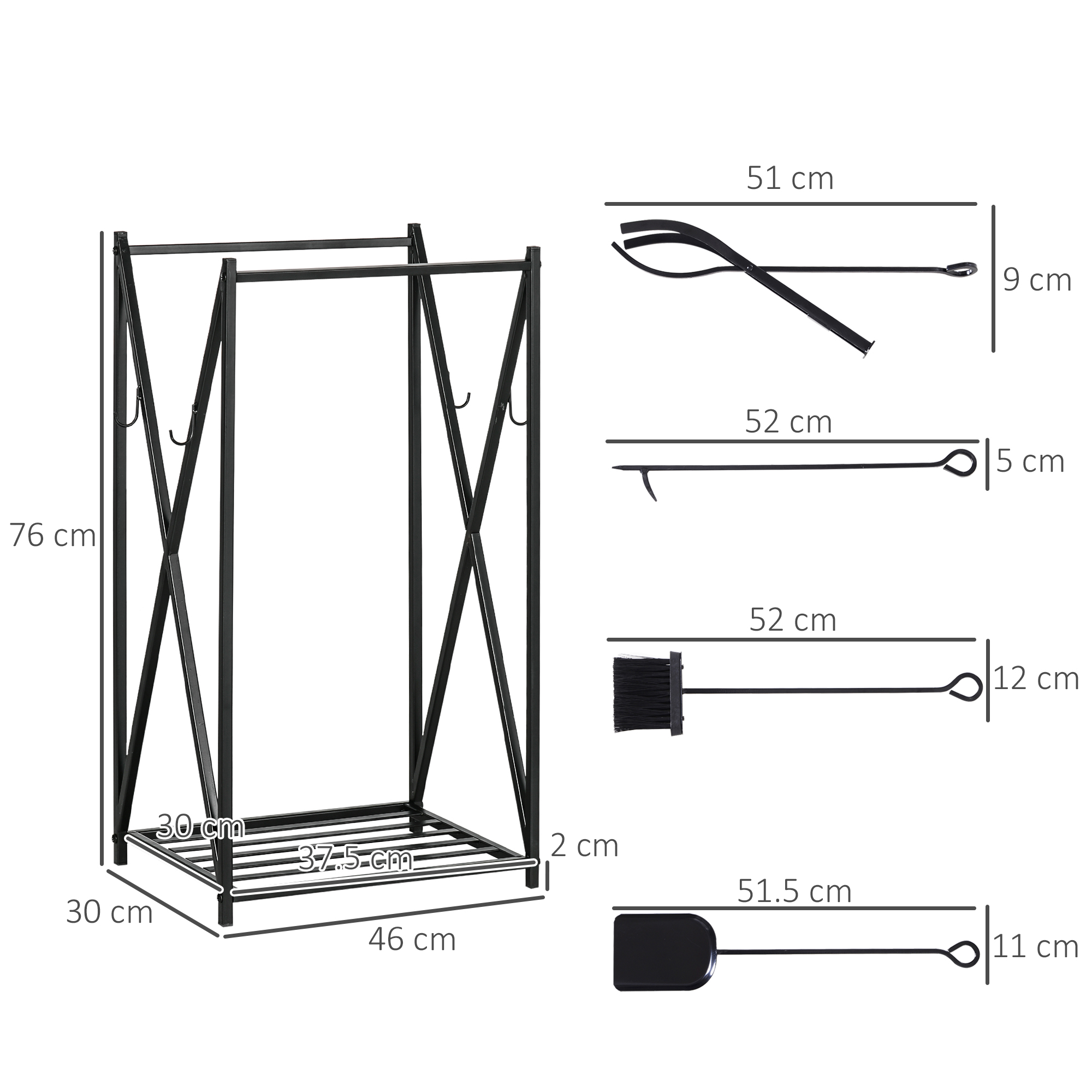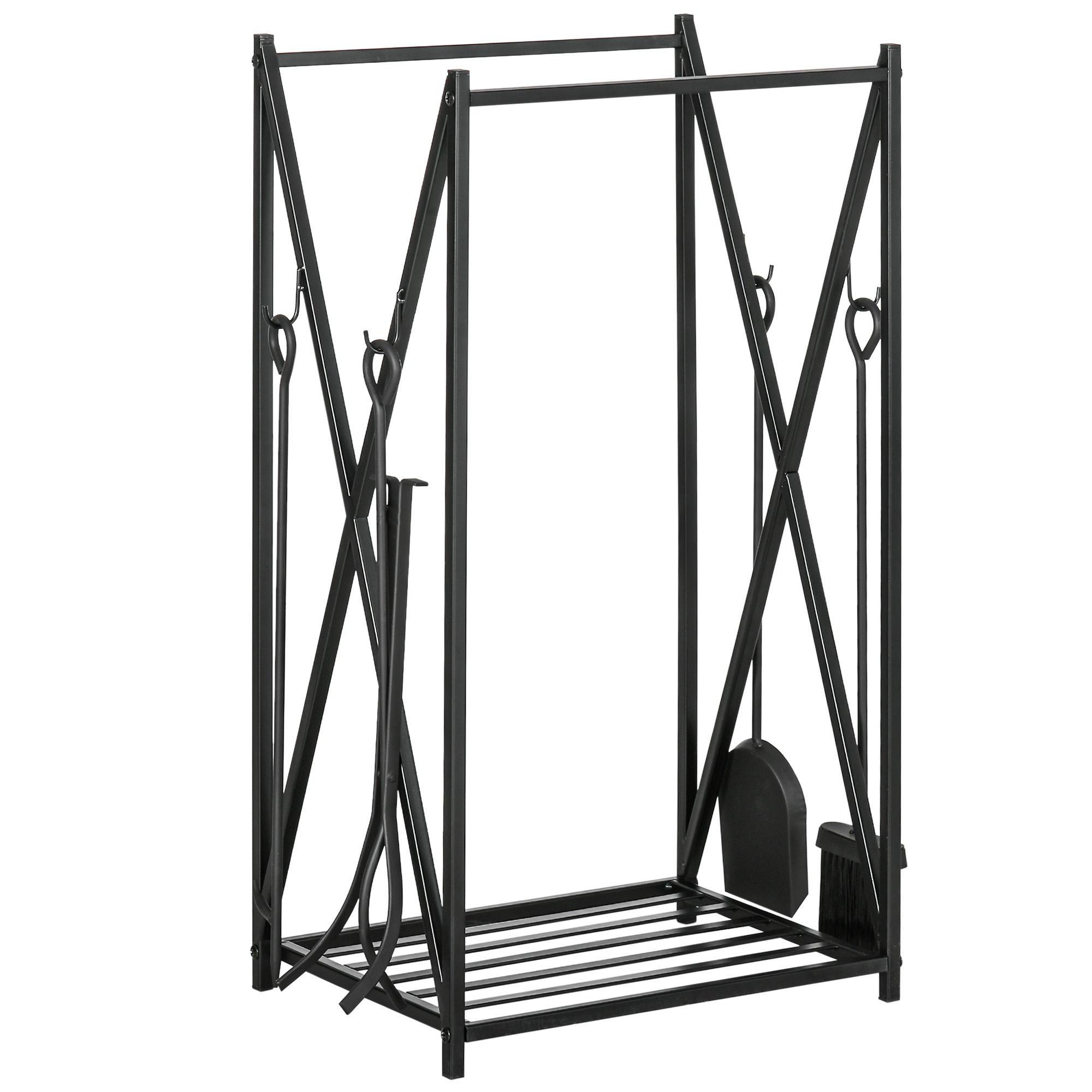 Portalegna da Interno ed Esterno in Acciaio con 4 Attrezzi Inclusi, Capacità 1kg 46x30x76cm Nero