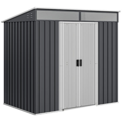 Casetta da Giardino in Lamiera d’Acciaio con Doppie Porte Scorrevoli, 277x195x192cm, Argento