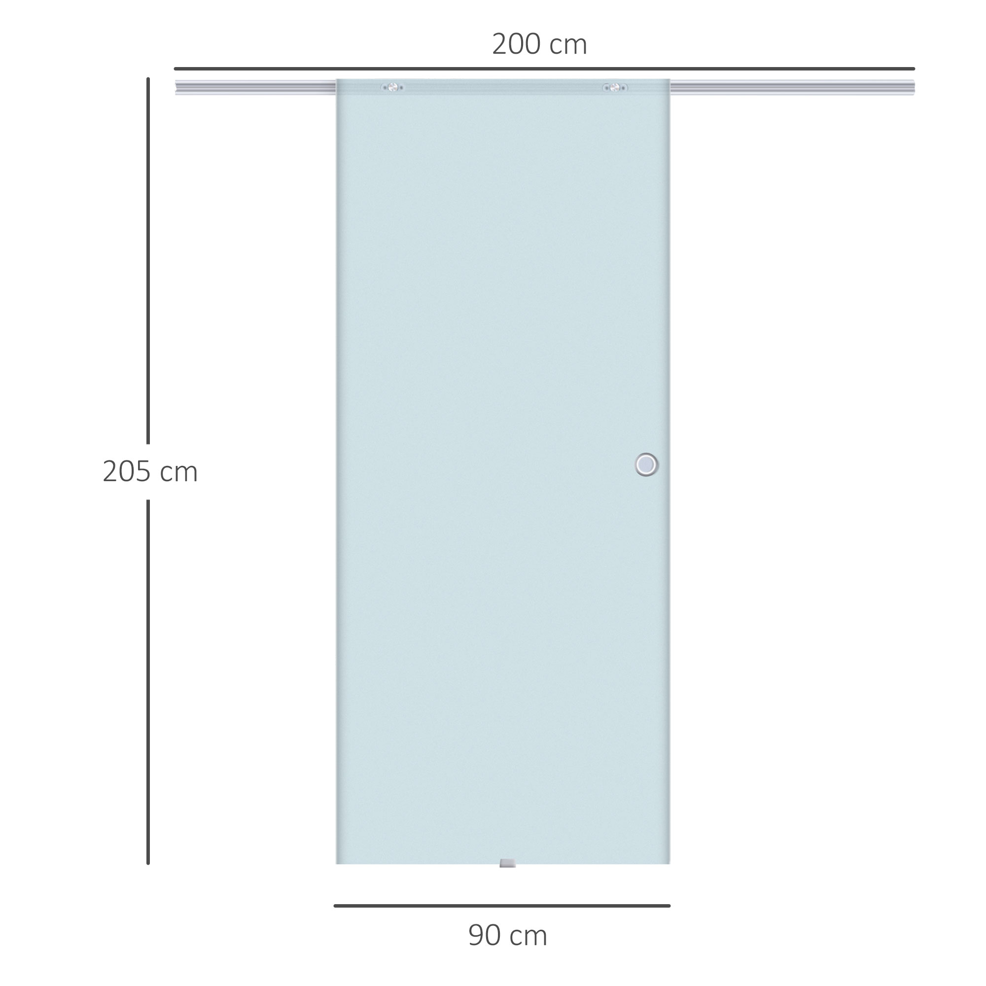 Porte Scorrevoli in Vetro Satinato da Interni con Binario B3 in Alluminio per Bagno Cucina Studio 205x90x0,8cm