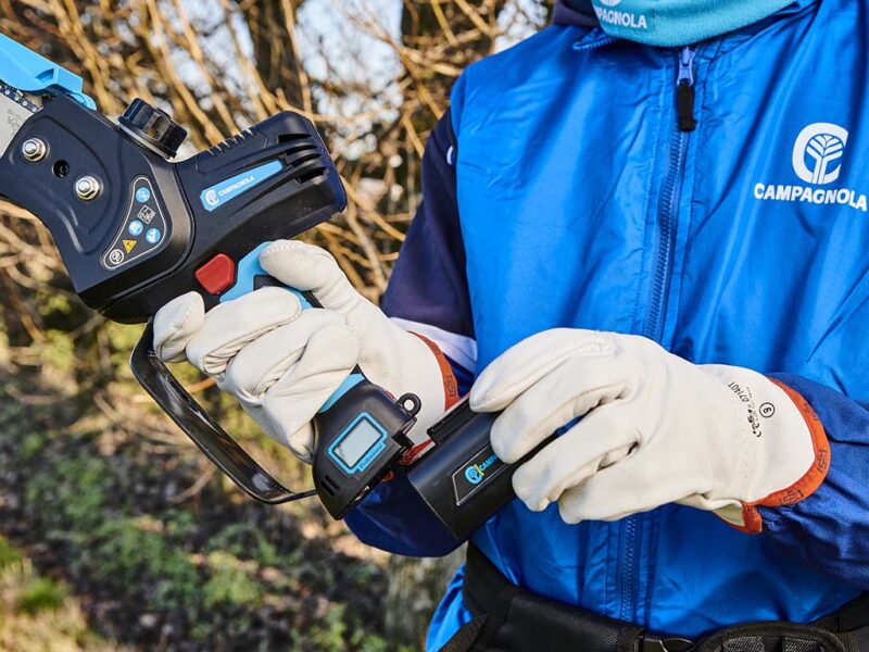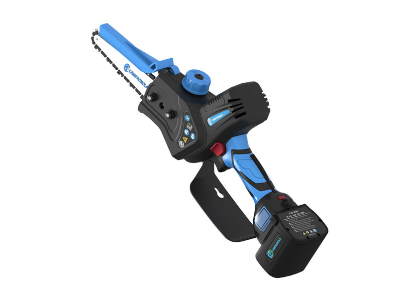 Il suo vantaggio principale è dato dalla libertà di movimento – grazie al peso contenuto e la batteria integrata -, che si sposa con la notevole potenza del prodotto, la quale consente di effettuare tagli veloci e precisi. T-FOX dispone, inoltre, di un serbatoio trasparente dell’olio per la lubrificazione automatica della catena, come pure di un display LCD multifunzione, che permette di vedere la percentuale di carica della batteria e le ore di lavoro.