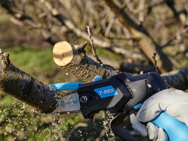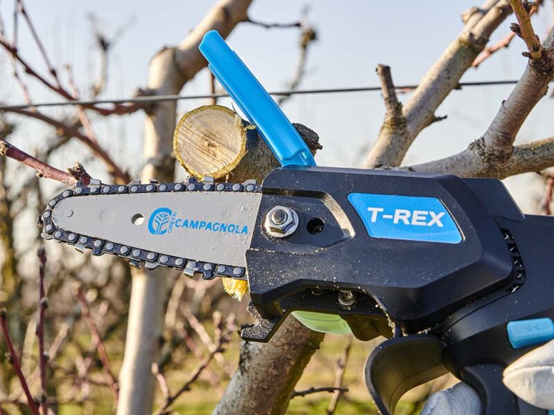 T-REX è un potatore elettrico a catena compatto, tra i migliori prodotti per la potatura in frutteto, ma anche in vigneto.