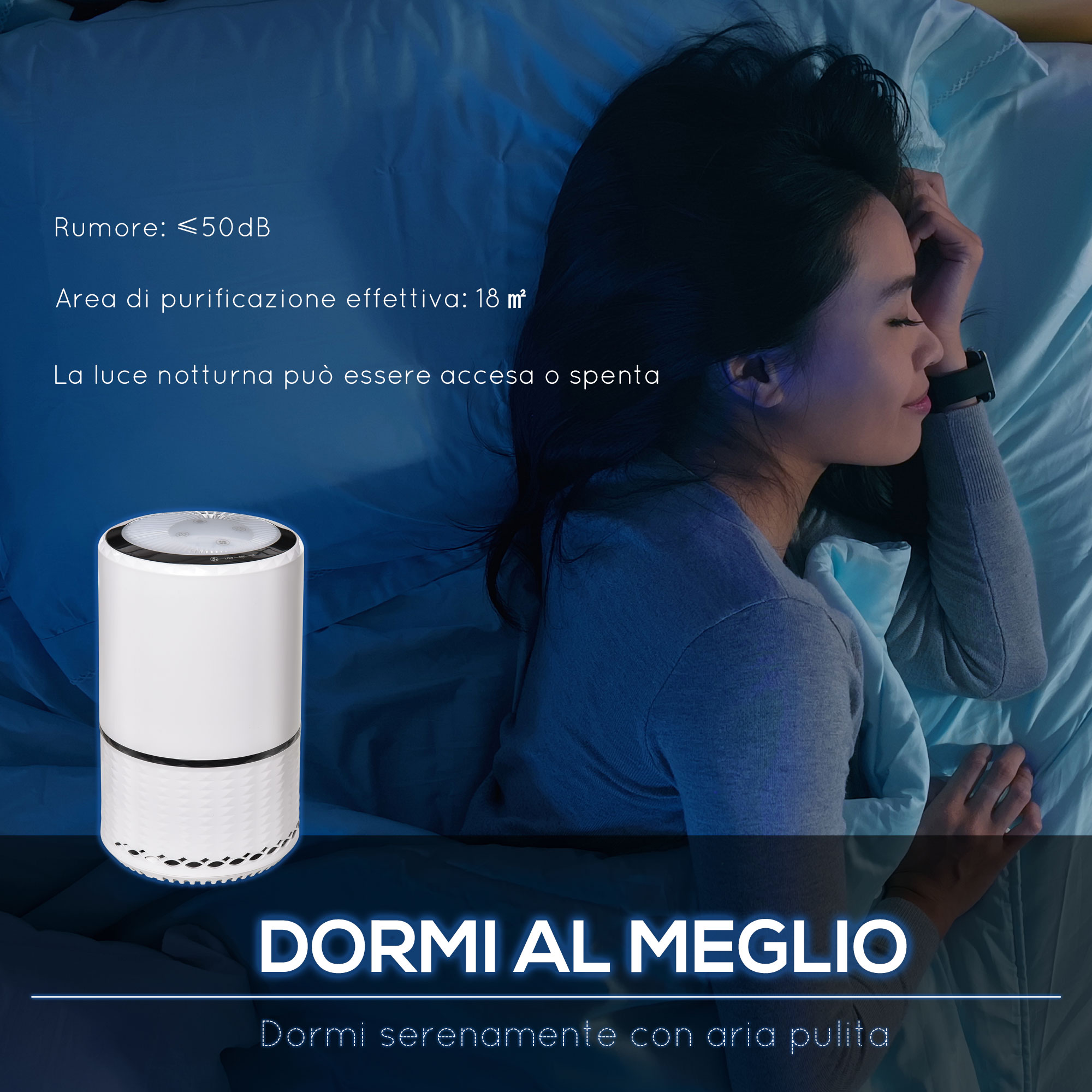 Purificatore d’Aria con Filtro HEPA Carbone Attivo, 3 Velocità Regolabili, Area coperta 18㎡, per Polvere, Fumo, Odori, Polline