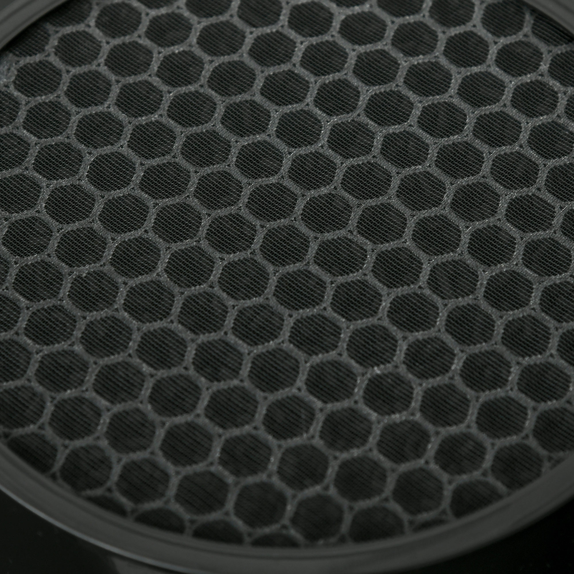 • • Sistema di filtraggio a 3 livelli con cotone, HEPA e filtri in carbone attivo