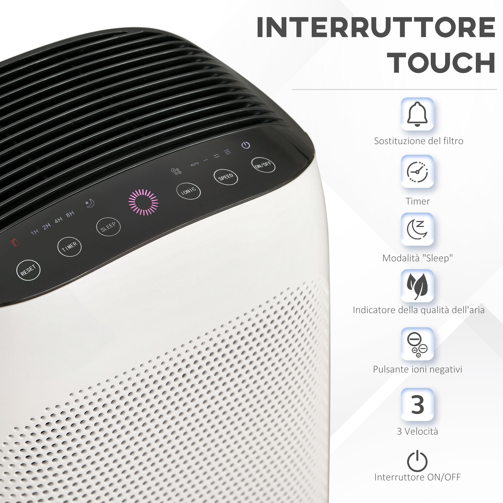 Purificatore d’Aria Filtro HEPA Triplo Strato, 3 Velocità, Modalità Sonno e Timer, 32,7x22x55,8cm, Bianco
