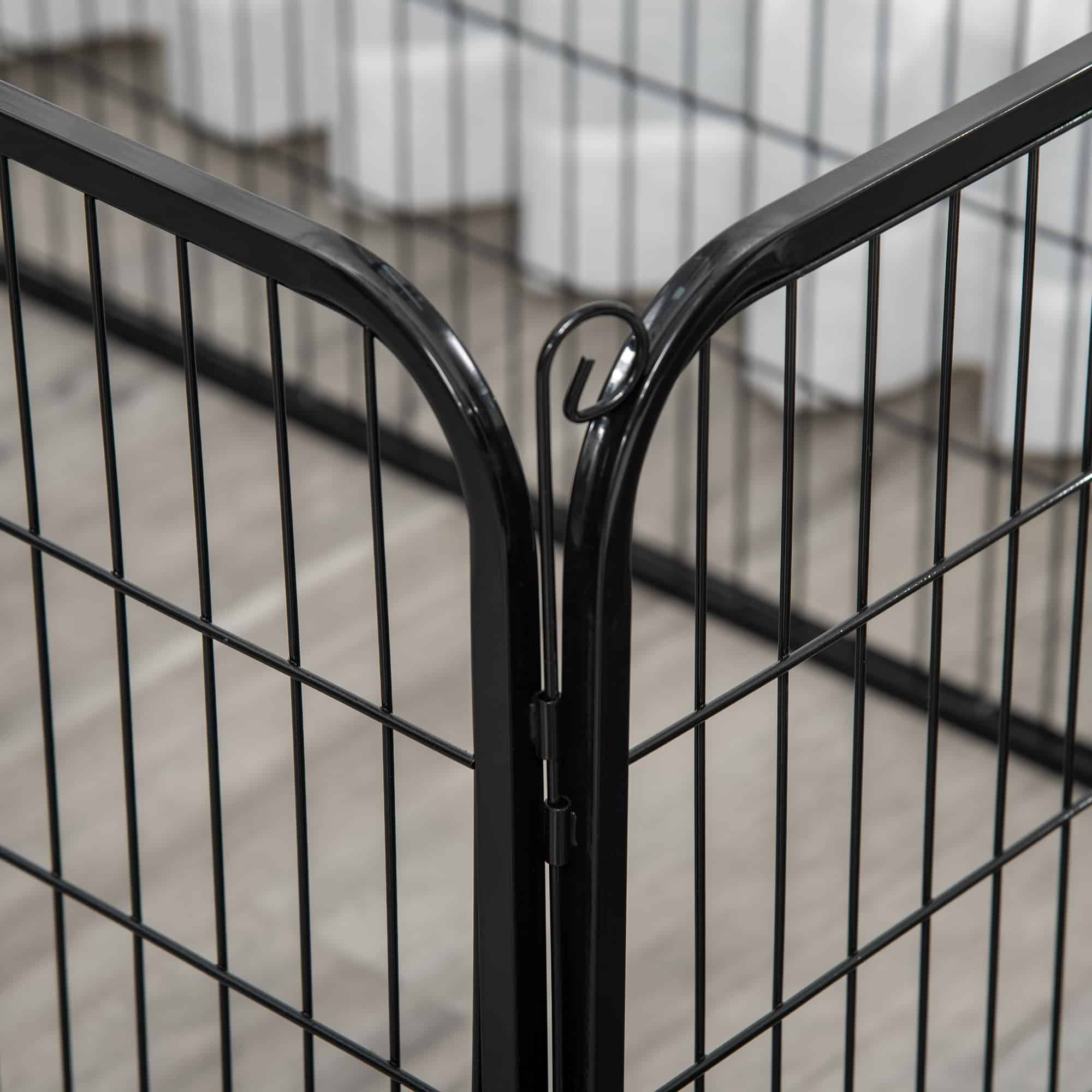 Recinto per Cani di Piccoli Taglia da Interno ed Esterno, Recinzione per Animali Domestici con Rete 6 pz in Acciaio e Metallo, 125x80x70 cm, Nero