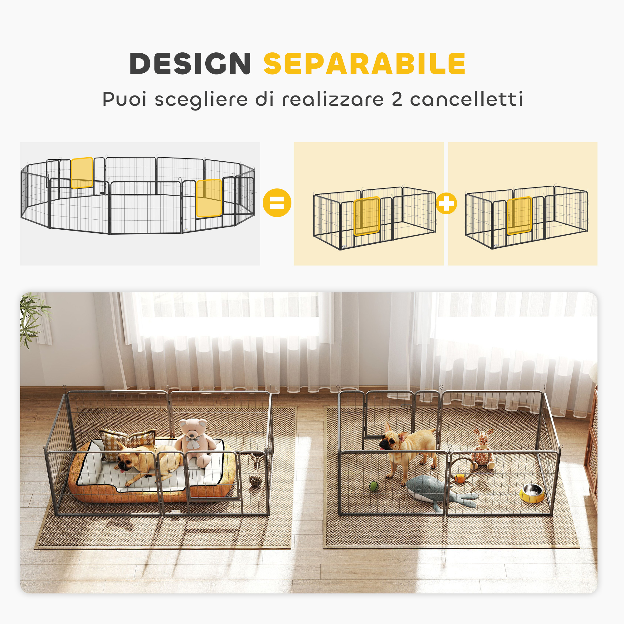Scopri il robusto recinto per cani [ITALFROM HOME DESIGN], un rifugio versatile a 12 pannelli per il tuo amico a 4 zampe! Grazie alla sua struttura modulabile, il recinto può assumere forme diverse, come un rettangolo o una L, per adattarsi perfettamente al tuo spazio e alle necessità del tuo pet, Il recinto offre un ambiente sicuro e ampio e un ingresso comodo, ideale sia per interni che per esterni, Si piega inoltre con estrema facilità per poter essere riposto senza problemi,