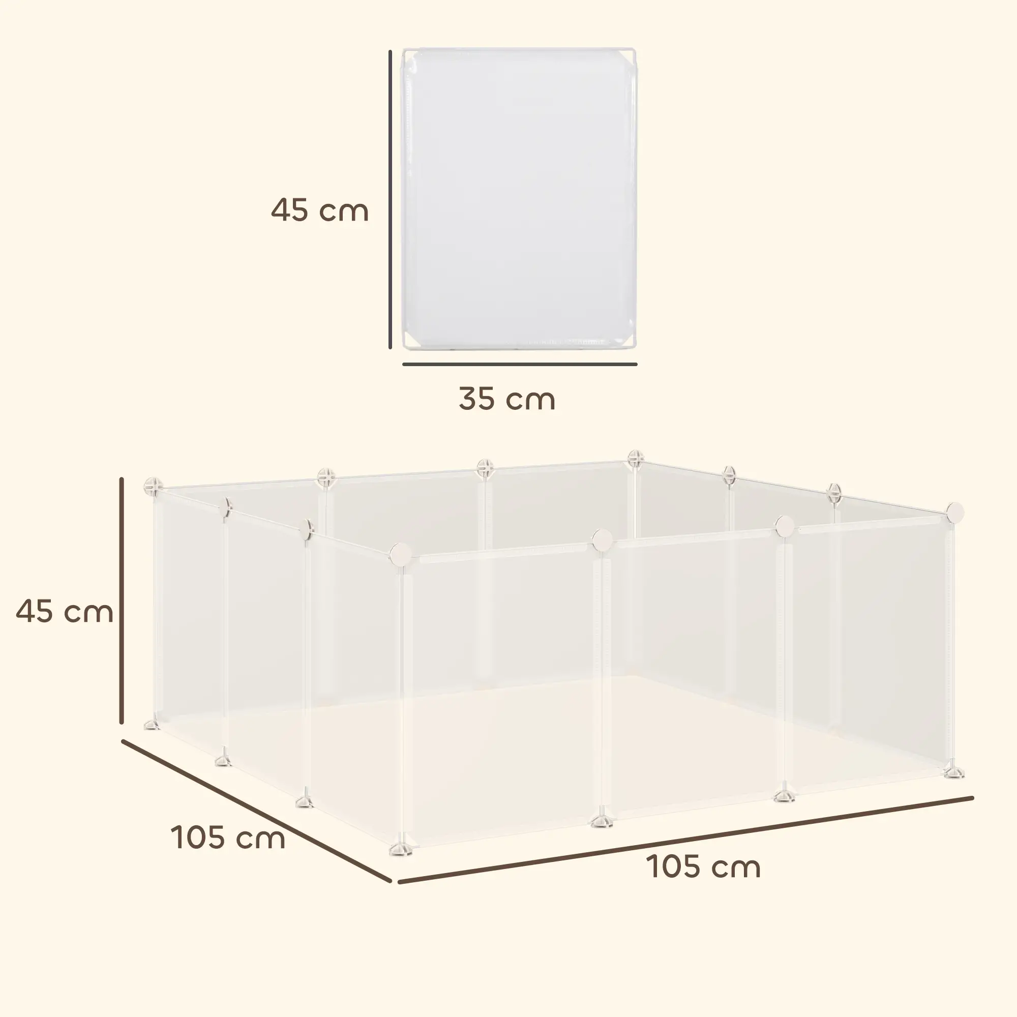 Recinto per Cuccioli e Piccoli Animali Modulabile in Metallo e PP, 12 Pannelli da 35x45cm Bianco