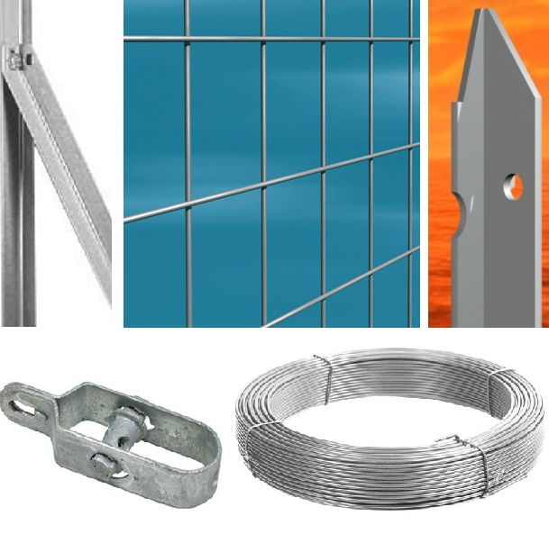 La composizione va a formare una recinzione di 25 mt lineare con paletti impiantati nel terreno circa ogni 2,5mt(10 paletti) , e 2 saette diagonali all’ inzio e alla fine della recinzione, e con una matassa da 100mt di fili di tensione e 6 tendifilo , e una matassa di 100 mt per legature e accorgimenti vari. l’ altezza della recinzione è di h 150 cm. Di seguito i prodotti che compongono la recinzione: