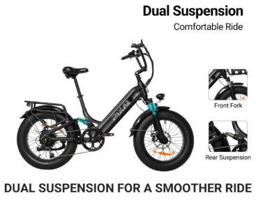 La sospensione anteriore con escursione da 40 mm assorbe efficacemente le vibrazioni. Le ruote 20×4.0 All-Terrain garantiscono grip eccellente su sabbia, ghiaia, neve leggera, sentieri e asfalto bagnato.