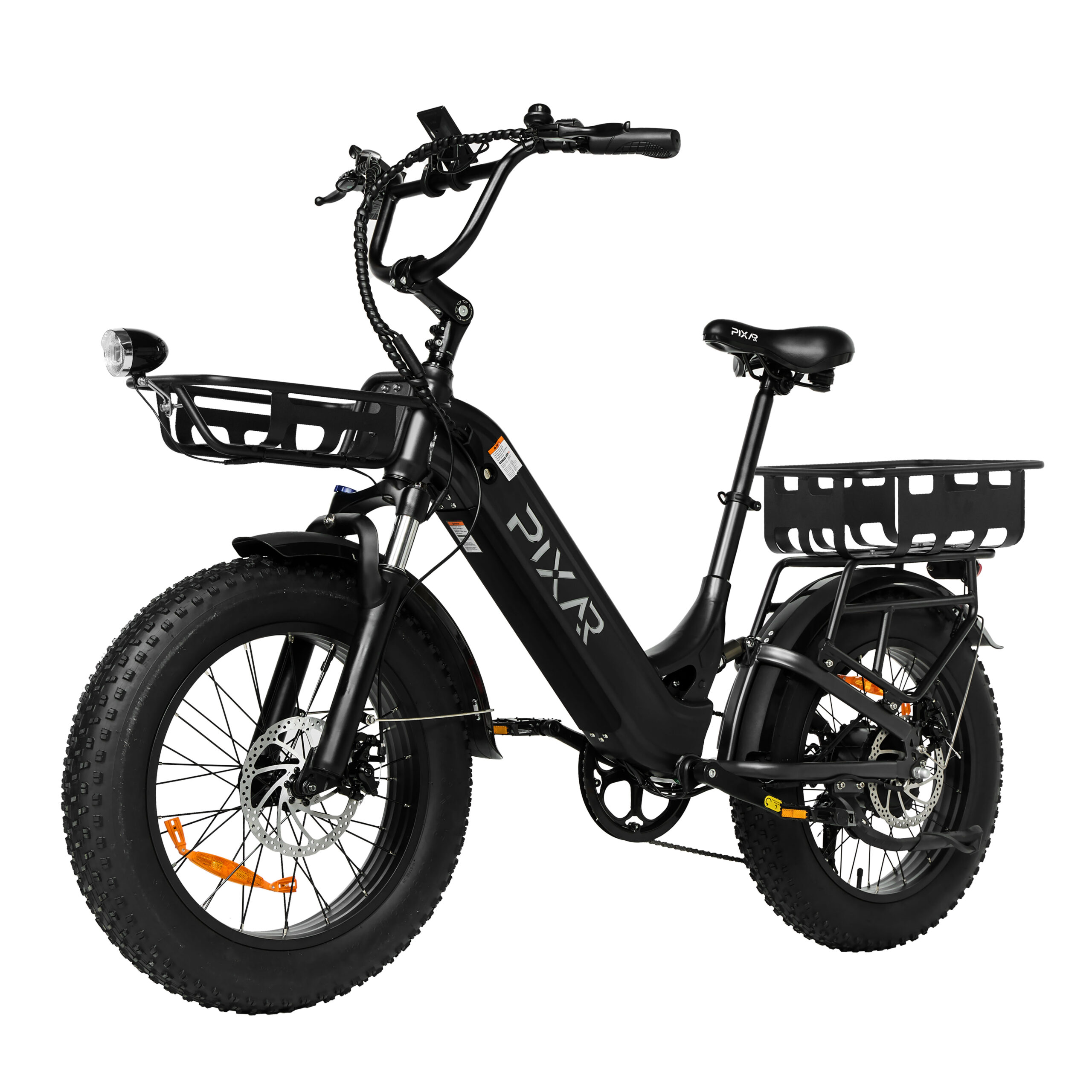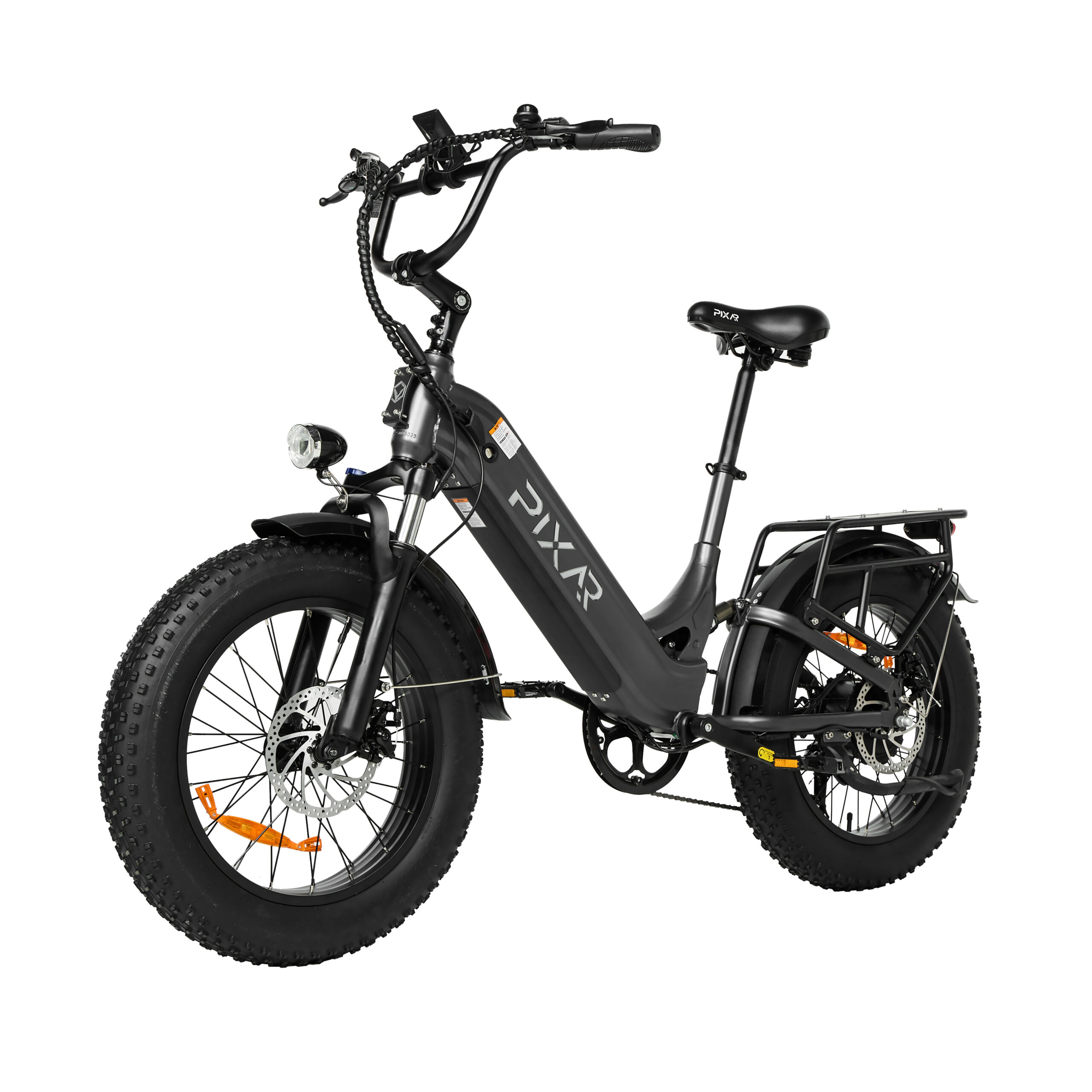 La sospensione anteriore con escursione da 40 mm assorbe efficacemente le vibrazioni. Le ruote 20×4.0 All-Terrain garantiscono grip eccellente su sabbia, ghiaia, neve leggera, sentieri e asfalto bagnato.