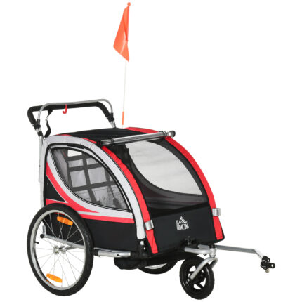 Parti per un’avventura insieme ai tuoi bambini con questo rimorchio a 2 posti [ITALFROM HOME DESIGN], Ha un telaio in acciaio e un tettuccio con pannelli trasparenti, per guardare il paesaggio durante il viaggio, La parte interna ha due cinture di sicurezza a 5 punti e una tasca laterale in cui sistemare tutti i loro accessori, E, per la massima sicurezza, abbiamo sistemato due catarifrangenti su ogni ruota e ti diamo in dotazione una bandierina, da usare per segnalare il rimorchio agli automobilisti,