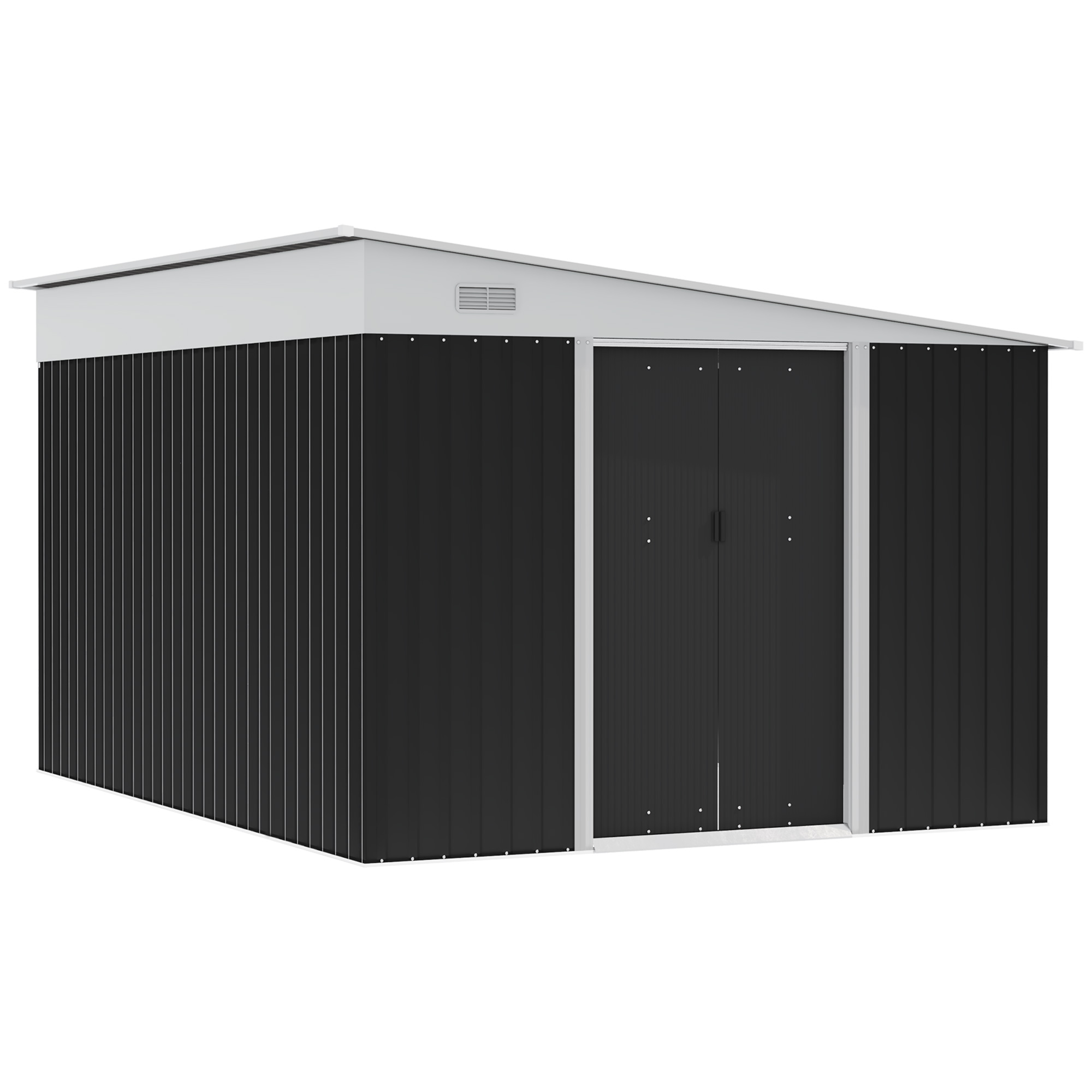 Ripostiglio da Giardino con Porta Scorrevole, in Acciaio, 345×280,5×169-201cm, Nero