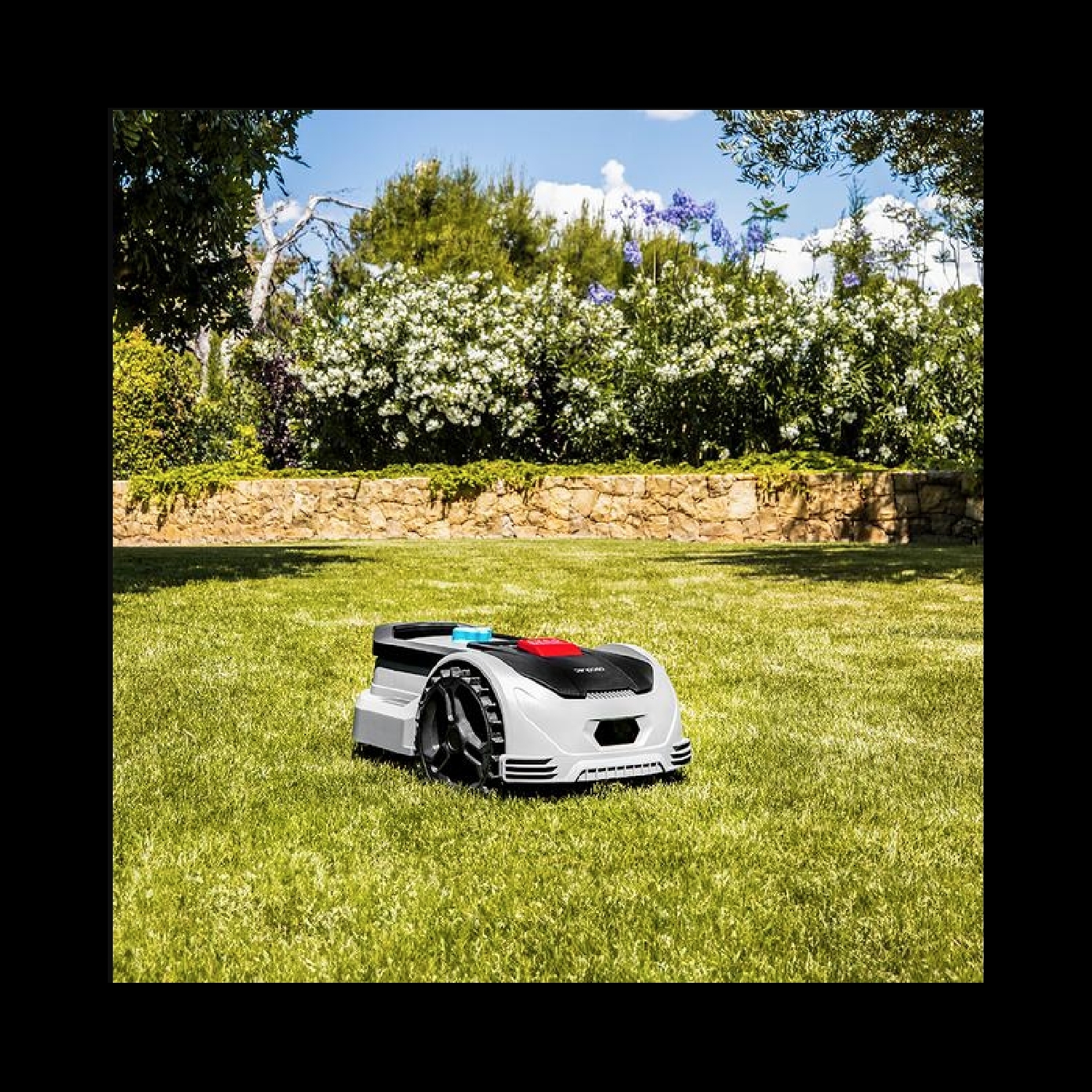 Robot tosaerba intelligente: si prende cura del tuo giardino, tutti i giorni, in modo automatico e senza farti perdere tempo. Il robot taglia il prato all’interno dell’area delimitata dal cavo perimetrale.