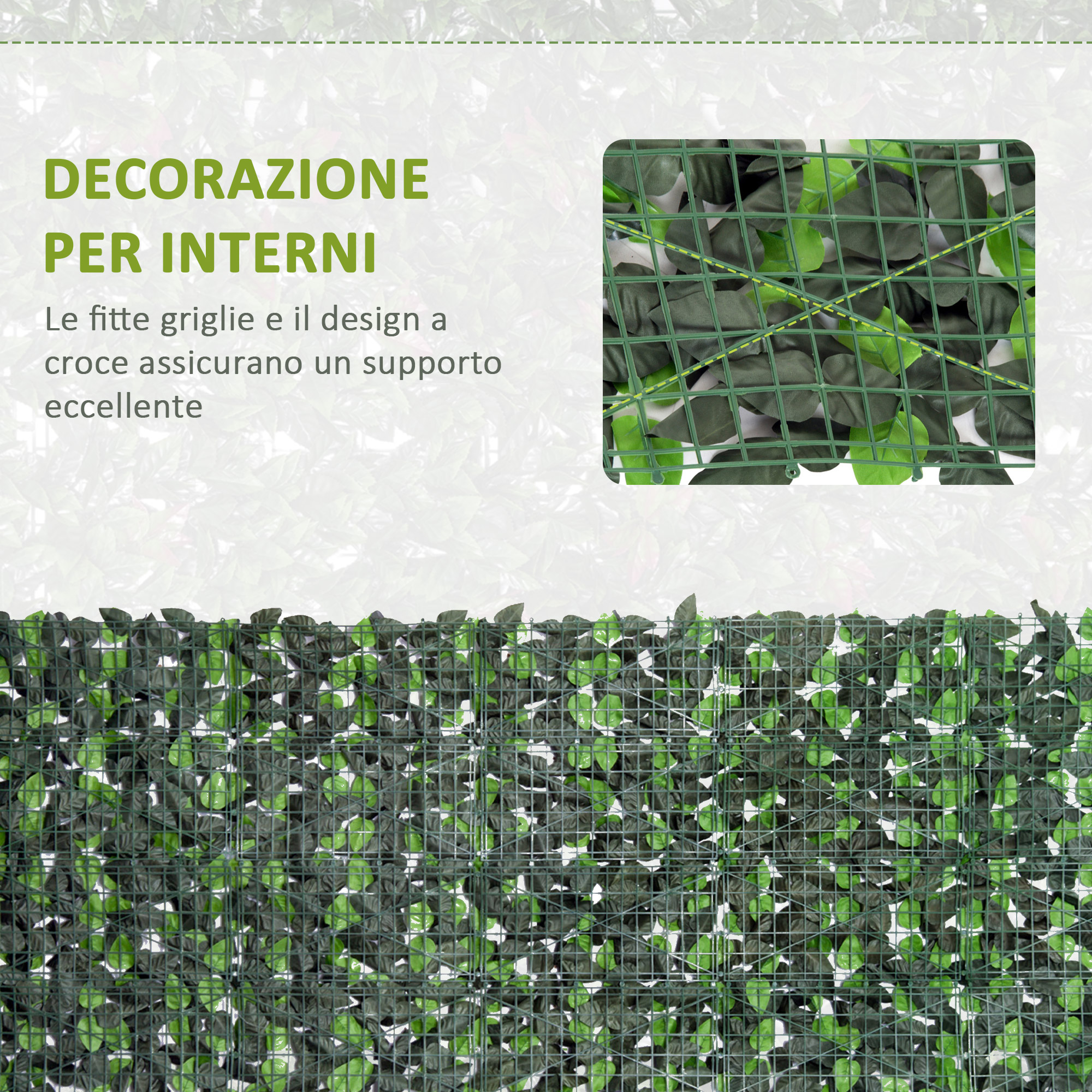 - • Finta siepe facile da installare e da fissare a qualsiasi parete o recinzione, grazie al supporto in rete