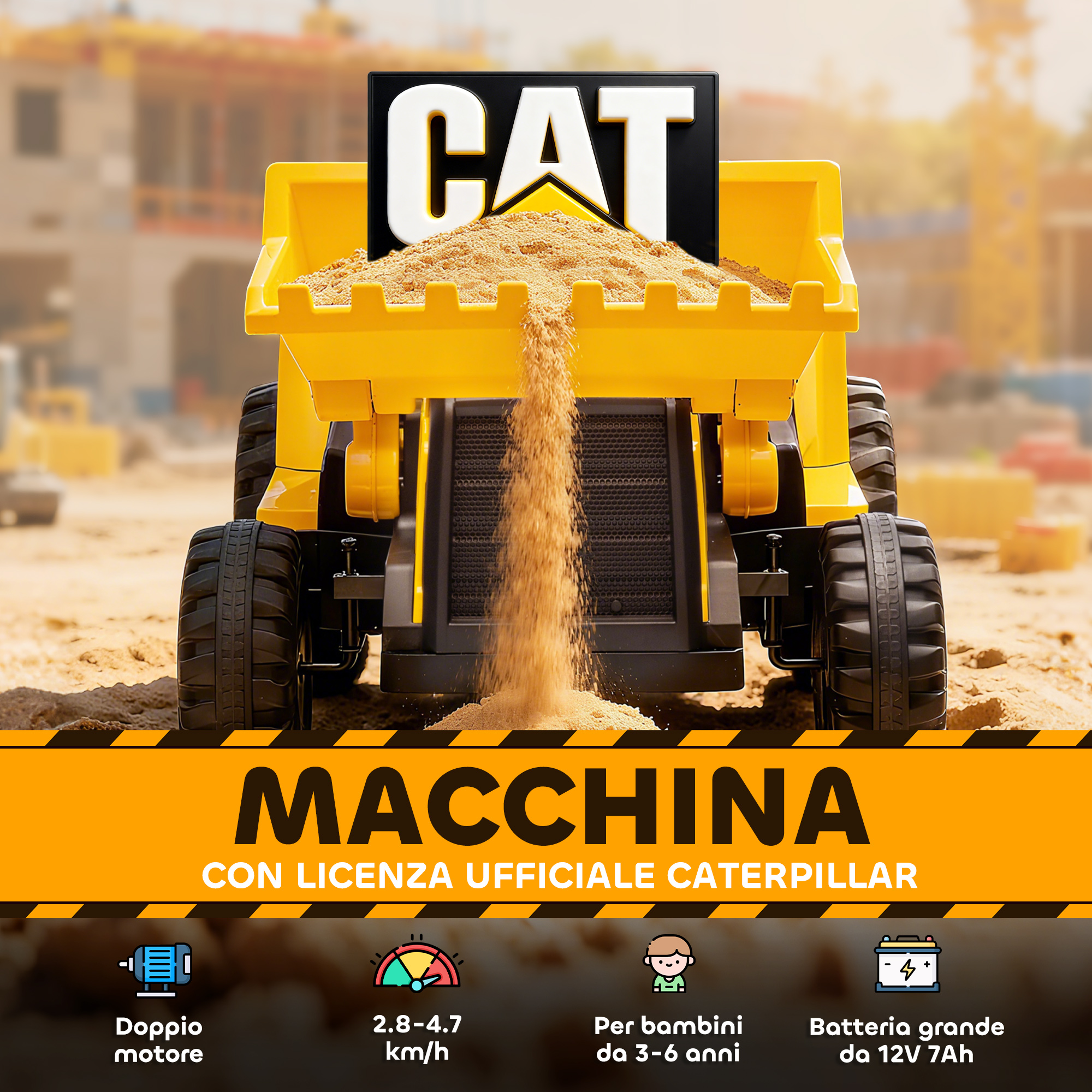Ruspa Elettrica per Bambini 3-6 Anni Marchio Ufficiale Caterpillar 12V con Telecomando, Giallo