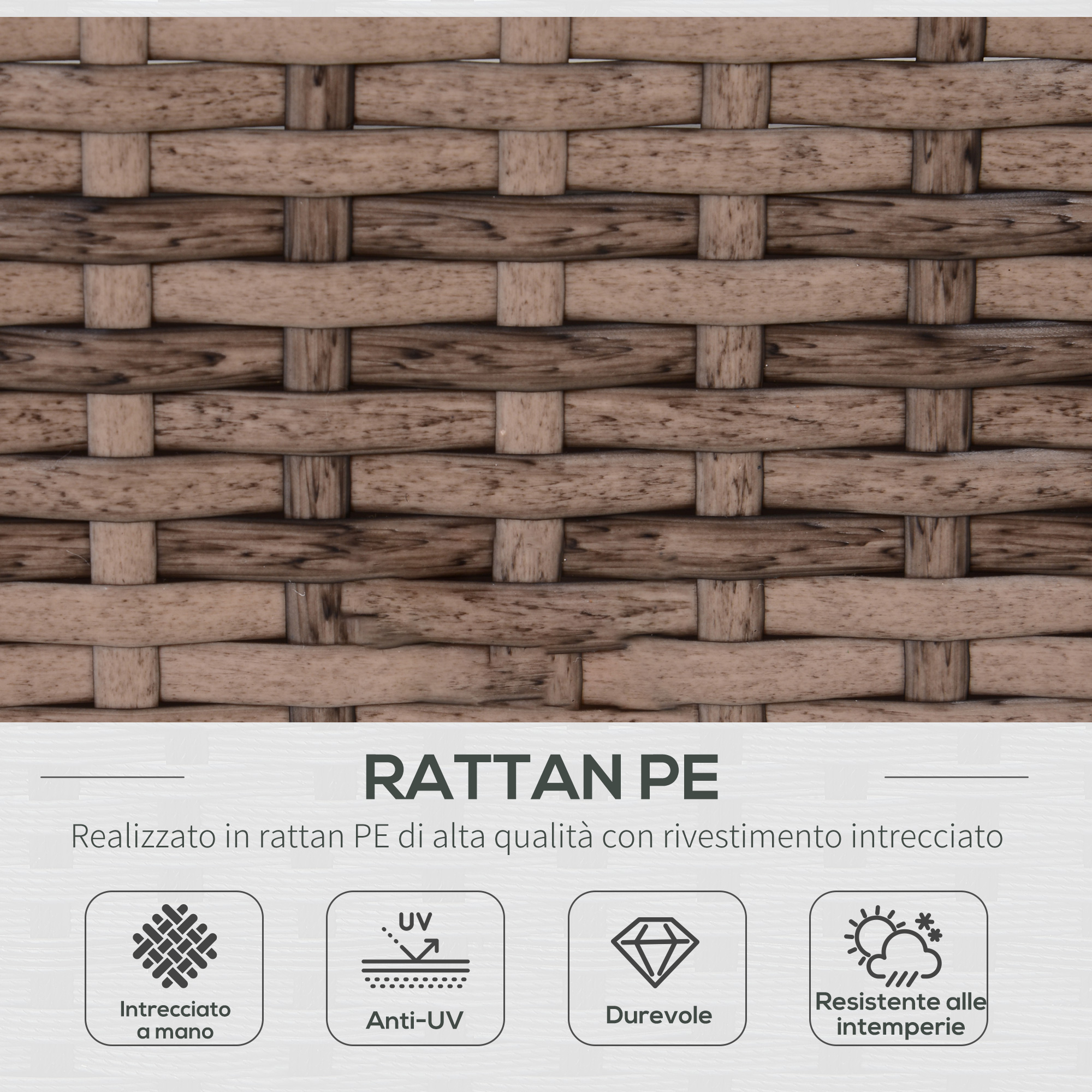 - • Struttura in metallo antiruggine e rattan PE, per durare a lungo