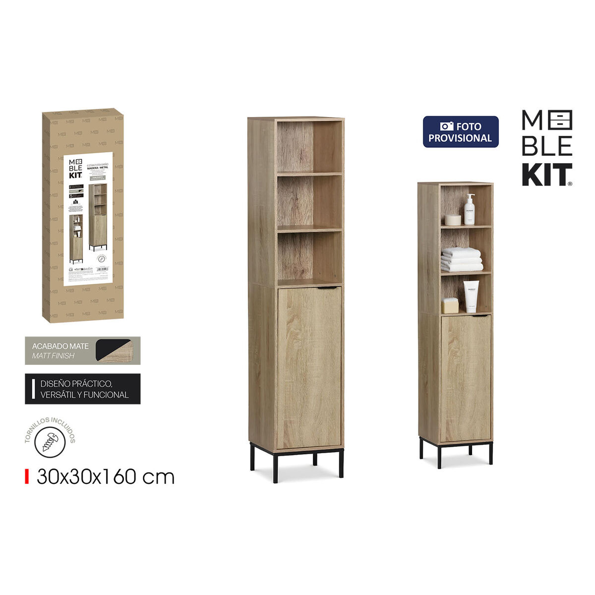 Scaffale da Bagno MobleKit Marrone 30 x 30 x 160 cm Legno Metallo
