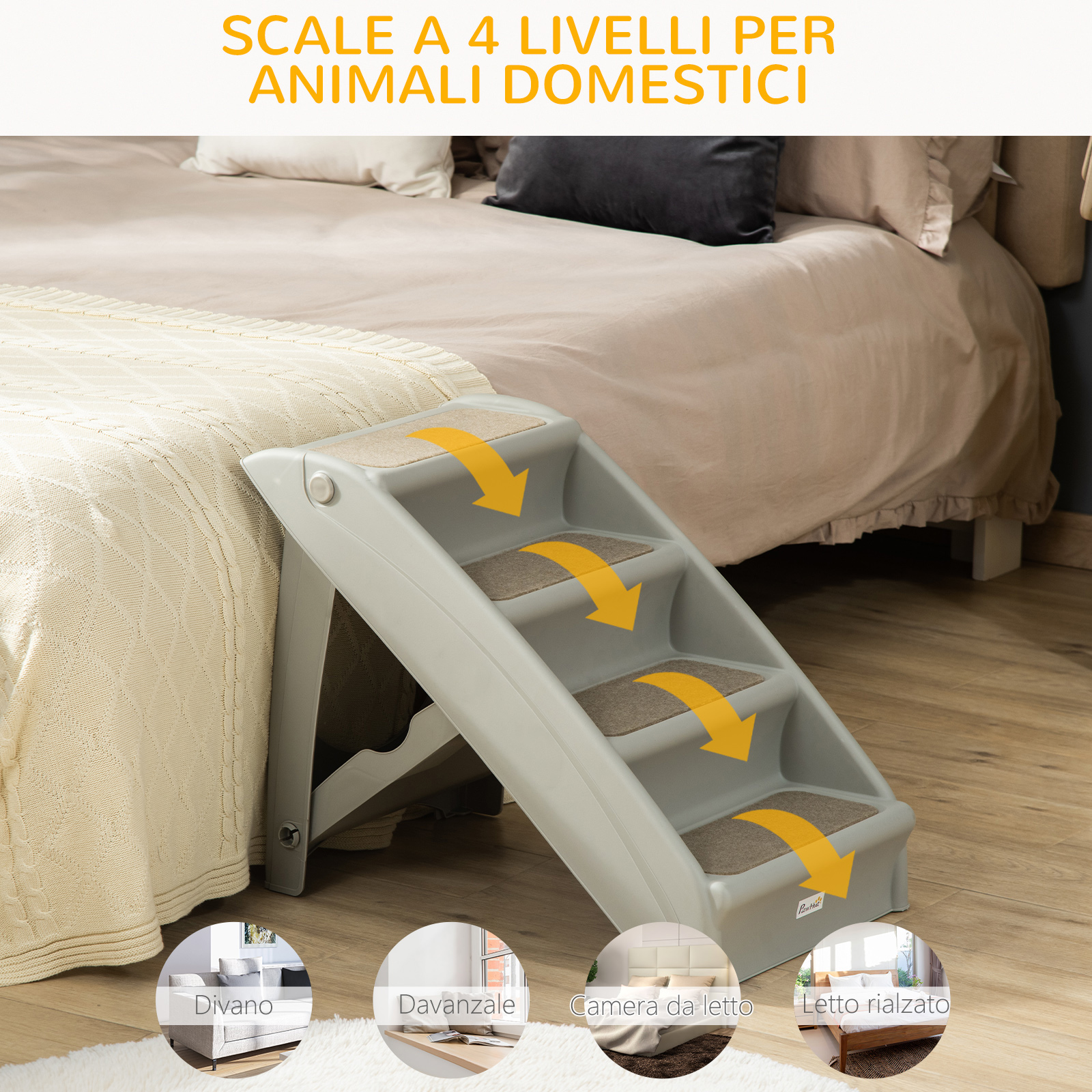 Scaletta per Cani Pieghevole con 4 Gradini Antiscivolo, Scaletta per Animali da 10kg max, 62x38x49,5 cm, Grigio