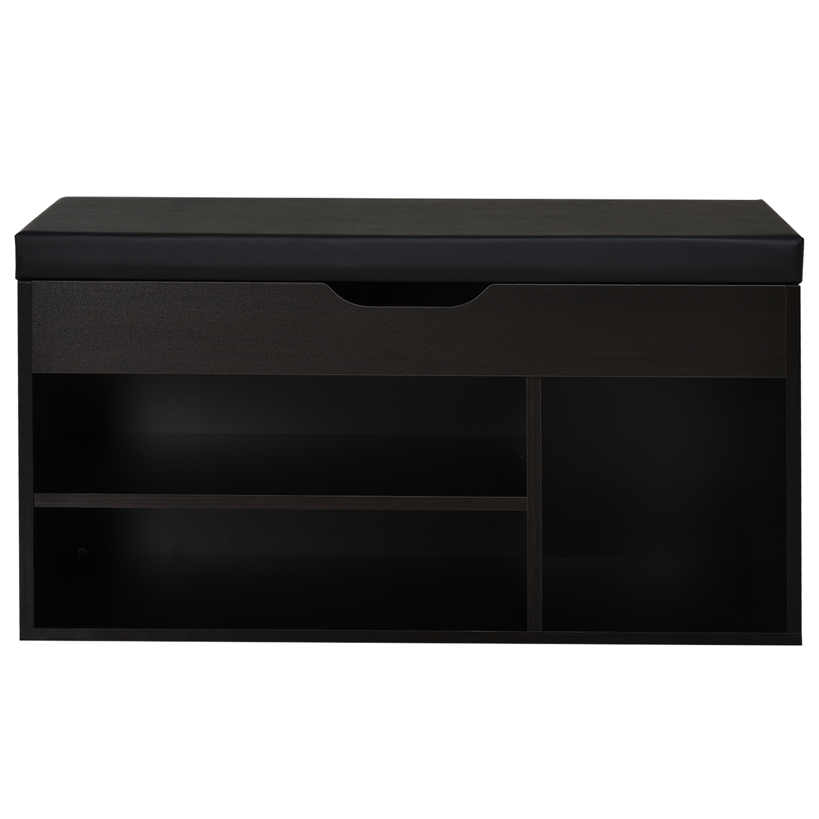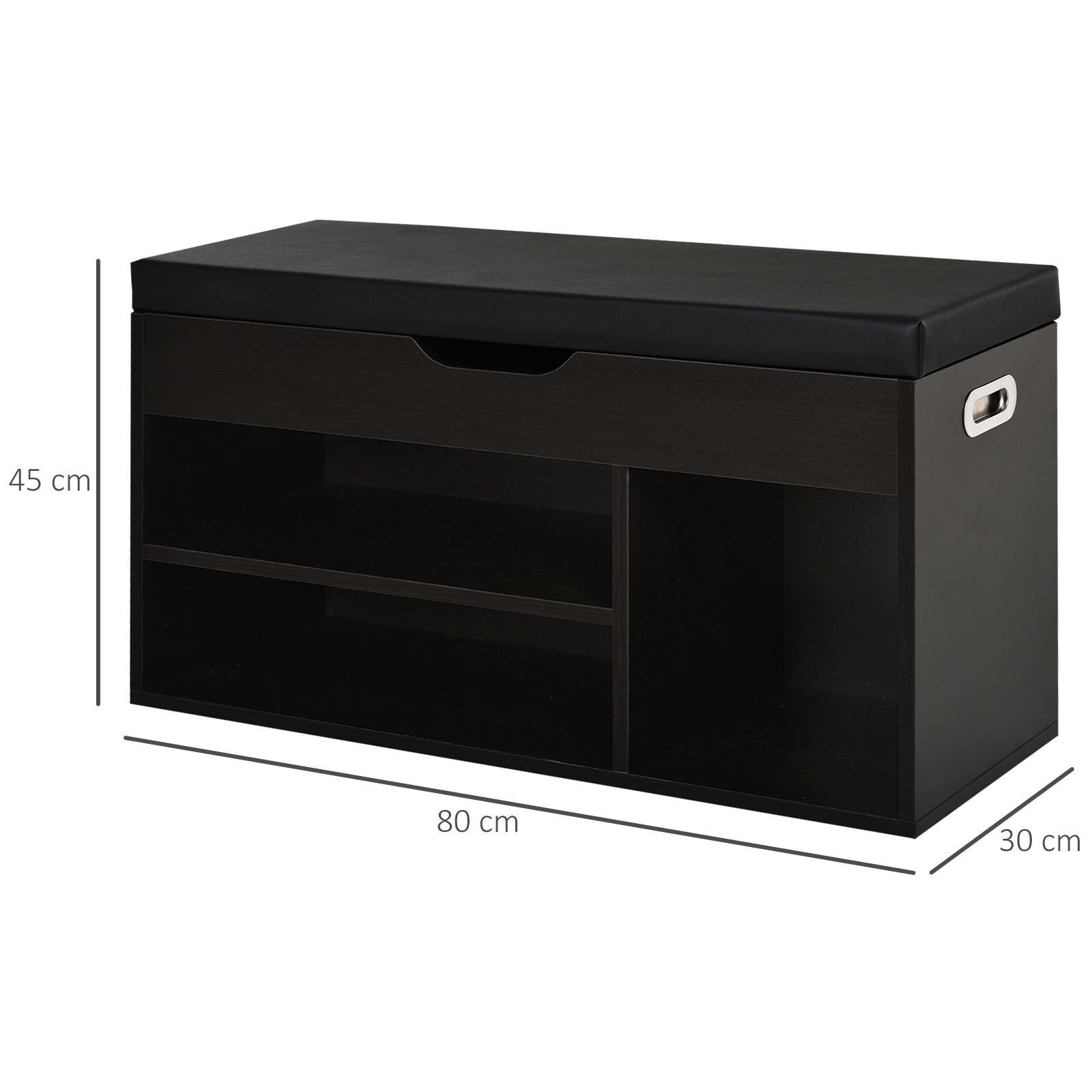 Scarpiera Salvaspazio da Ingresso Imbottita, Mobile da Ingresso con Scarpiera, con 3 Scomparti, Seduta in Pelle PU, per Soggiorno e Corridoio, 80x30x43 cm, Nero