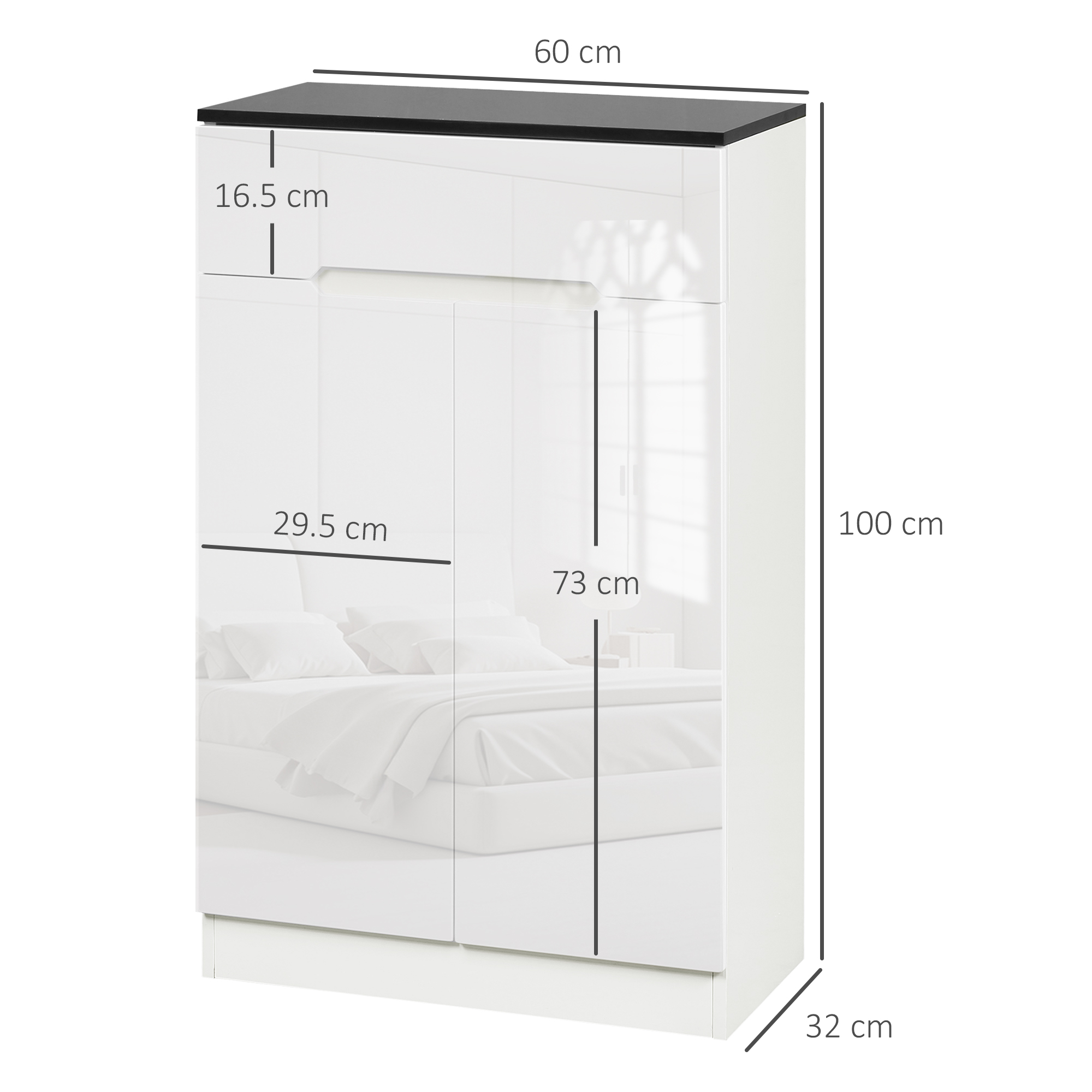 - • Dimensioni complessive: 60L x 32P x 1A cm