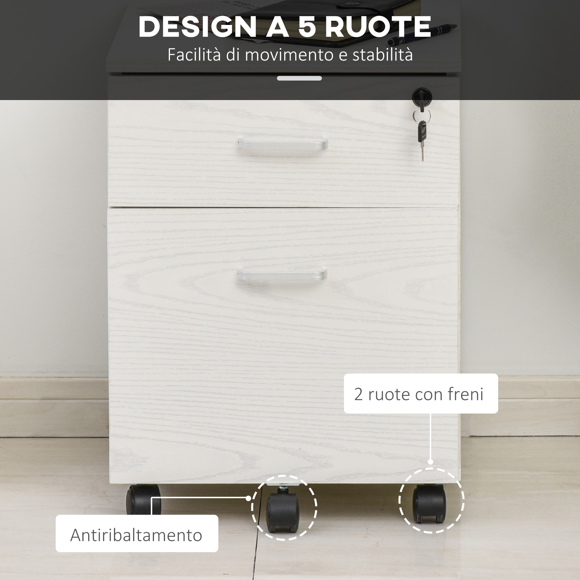 Schedario da Ufficio Cassettiera Per Scrivania in Legno, 2 Cassetti, Serratura con 2 Chiavi, Bianco, 40x45x55,6cm