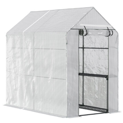 Serra a Casetta con Rivestimento in PE, Porta a Cerniera e 4 Ripiani, 186x120x190cm, Bianco