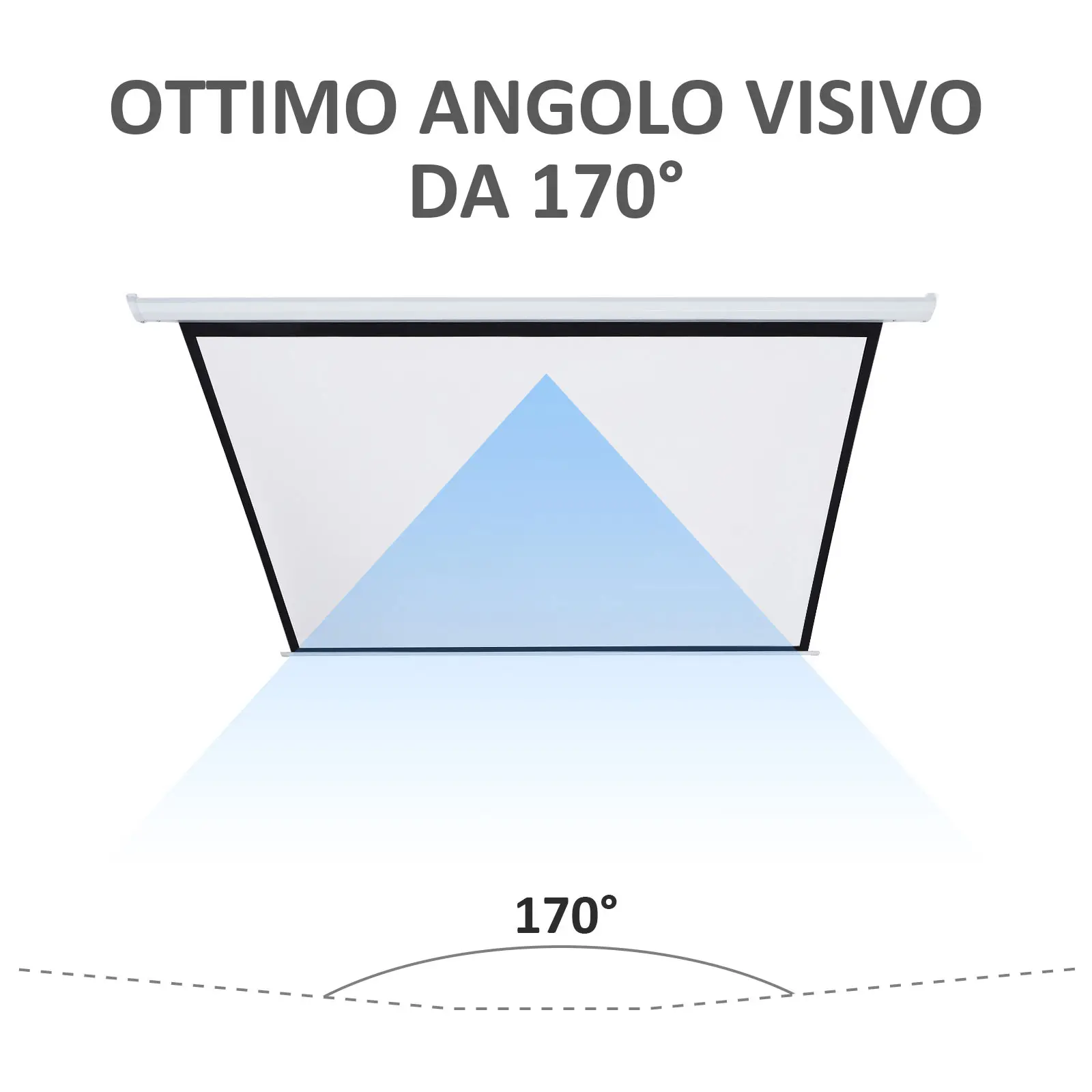 Schermo per Proiettore 1 Pollici Formato 4:3 Regolabile con Telecomando, Schermo di Proiezione Motorizzato Compatto, Installazione a Parete o Soffitto, 203×152 cm, Bianco