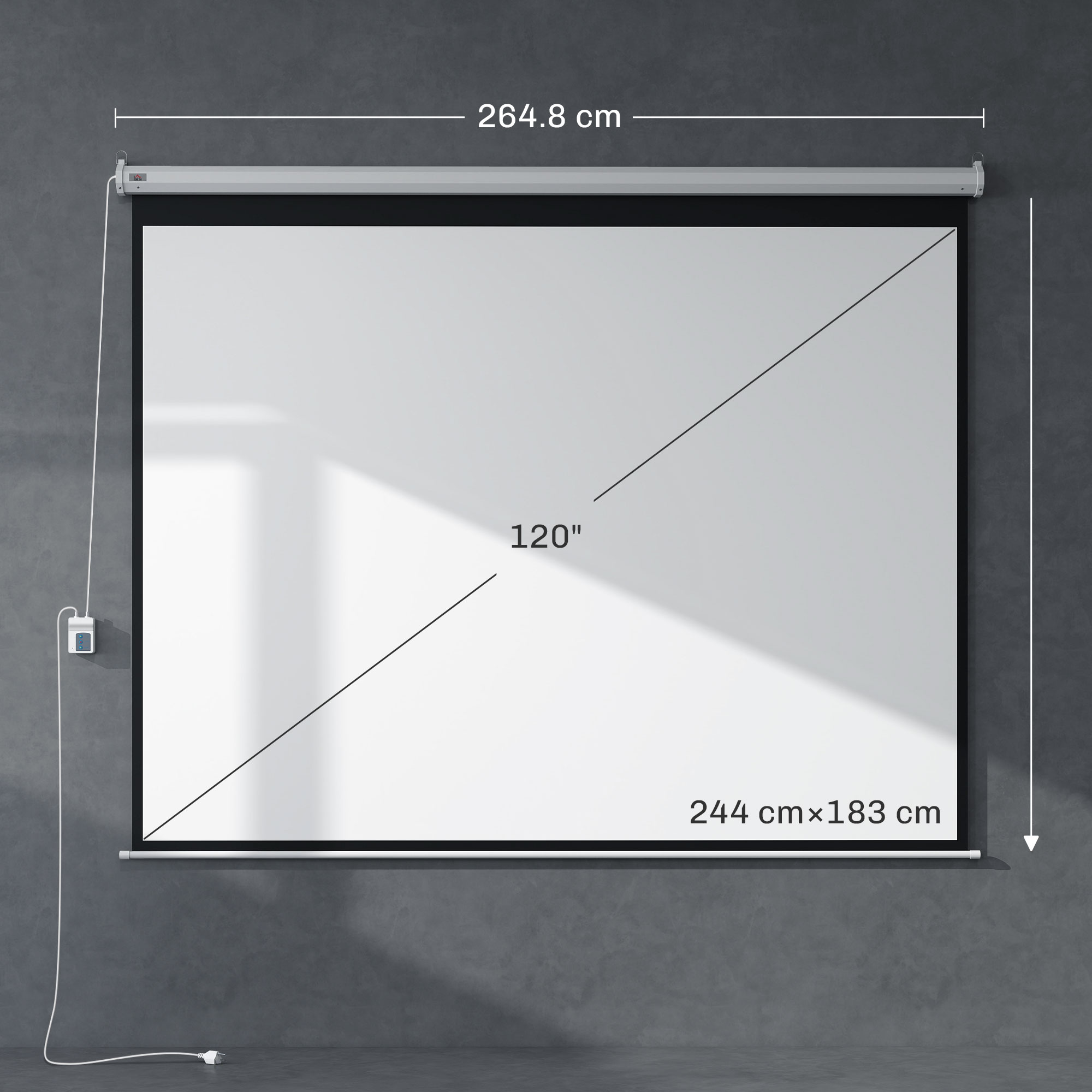 Schermo per Proiettore 120 Pollici Formato 4:3 Regolabile con Telecomando, Schermo di Proiezione Motorizzato Compatto, Installazione a Parete o Soffitto, 244×183 cm, Bianco