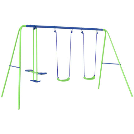Scivolo per Bambini da 18 Mesi Pieghevole con 3 Scalini e Canestro Basket, Scivolo da Interno ed Esterno, 147x82x85,5 cm, Blu e Grigio