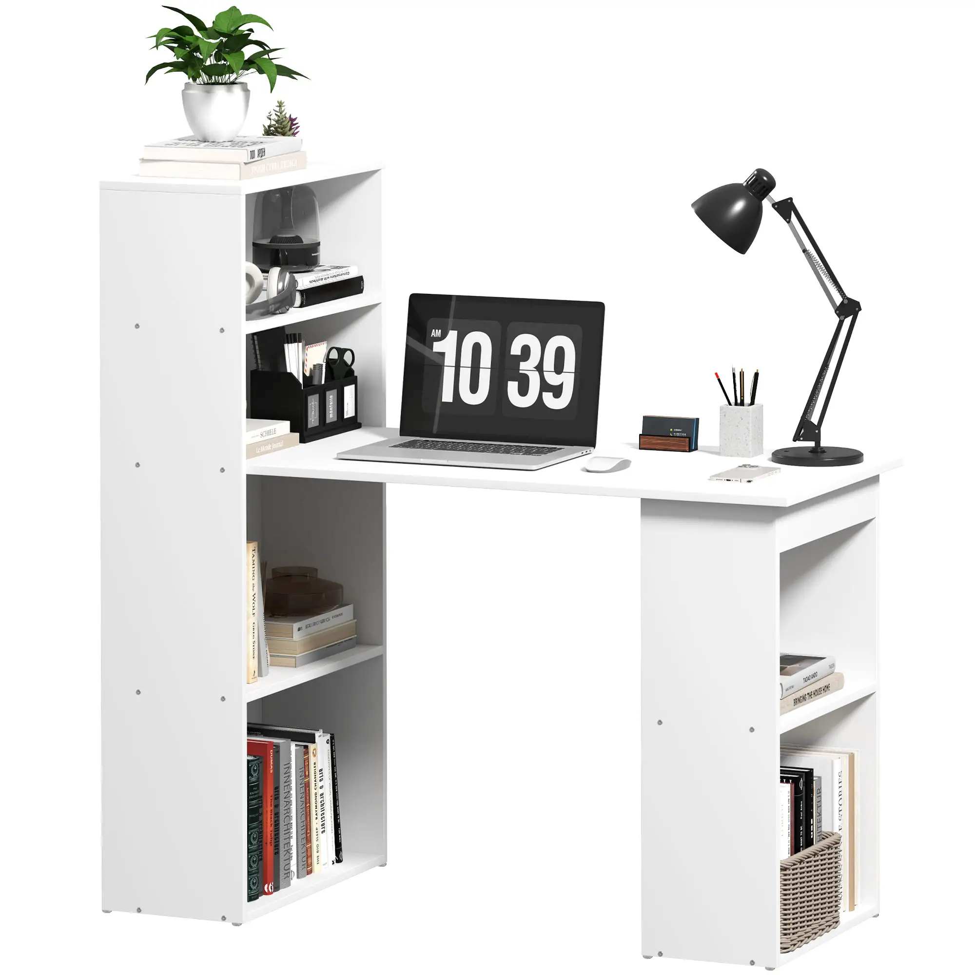 Scrivania Computer con Libreria Salvaspazio, Tavolo da Pranzo per Ufficio e Studio, 120x55x120 cm, Bianco