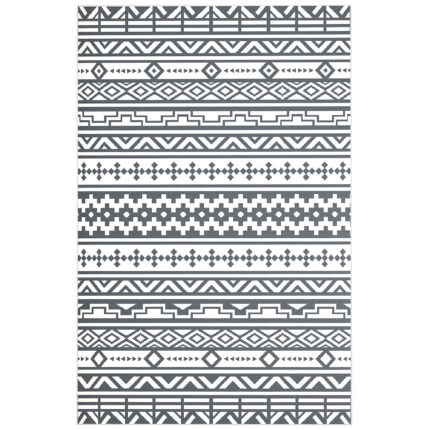Tappeto da Esterno Reversibile con Motivo Geometrico e Borsa Inclusa, 182×274 cm, Grigio e Bianco