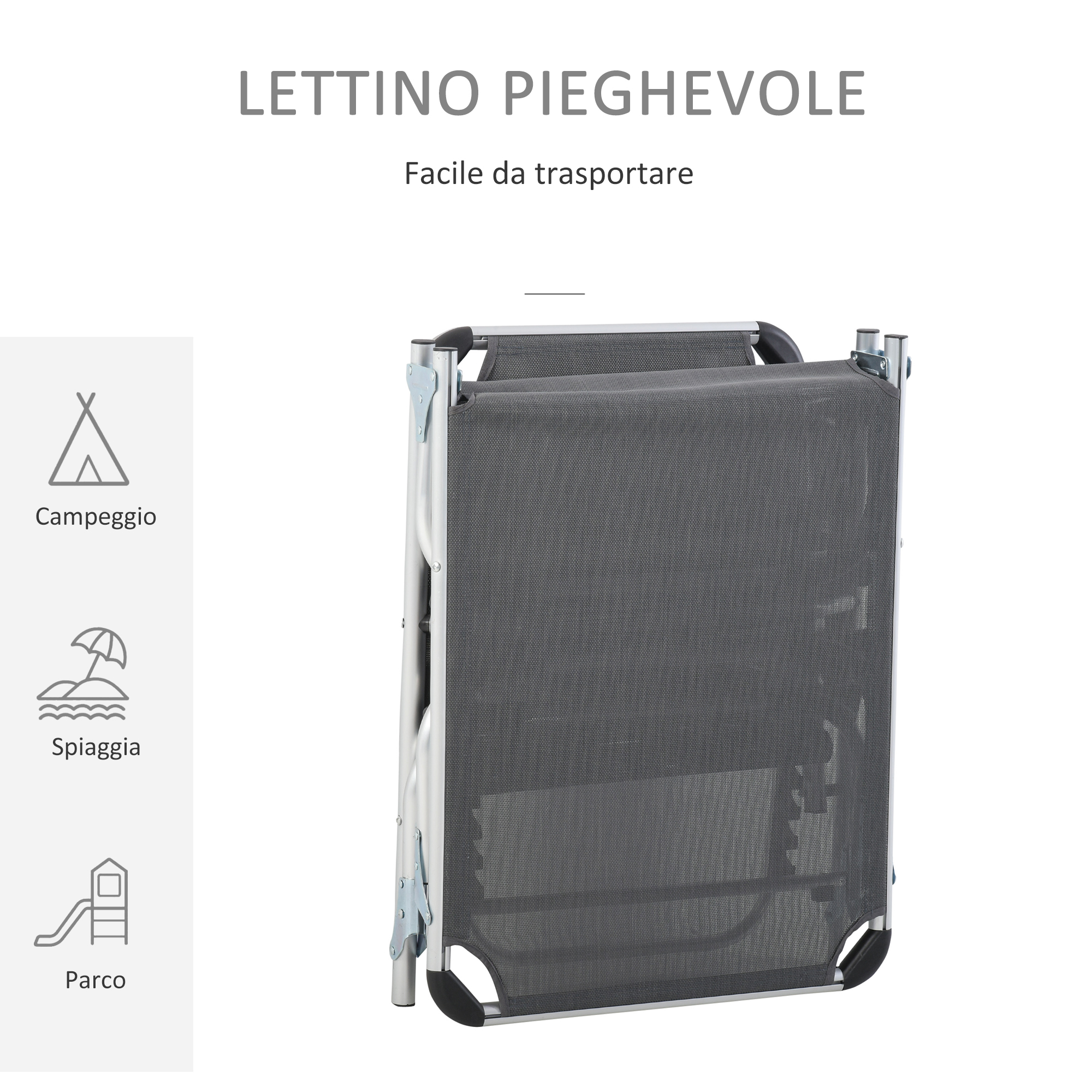 Sdraio Pieghevole con Poggiatesta e Schienale Regolabile in Alluminio 60x165x76cm Grigio