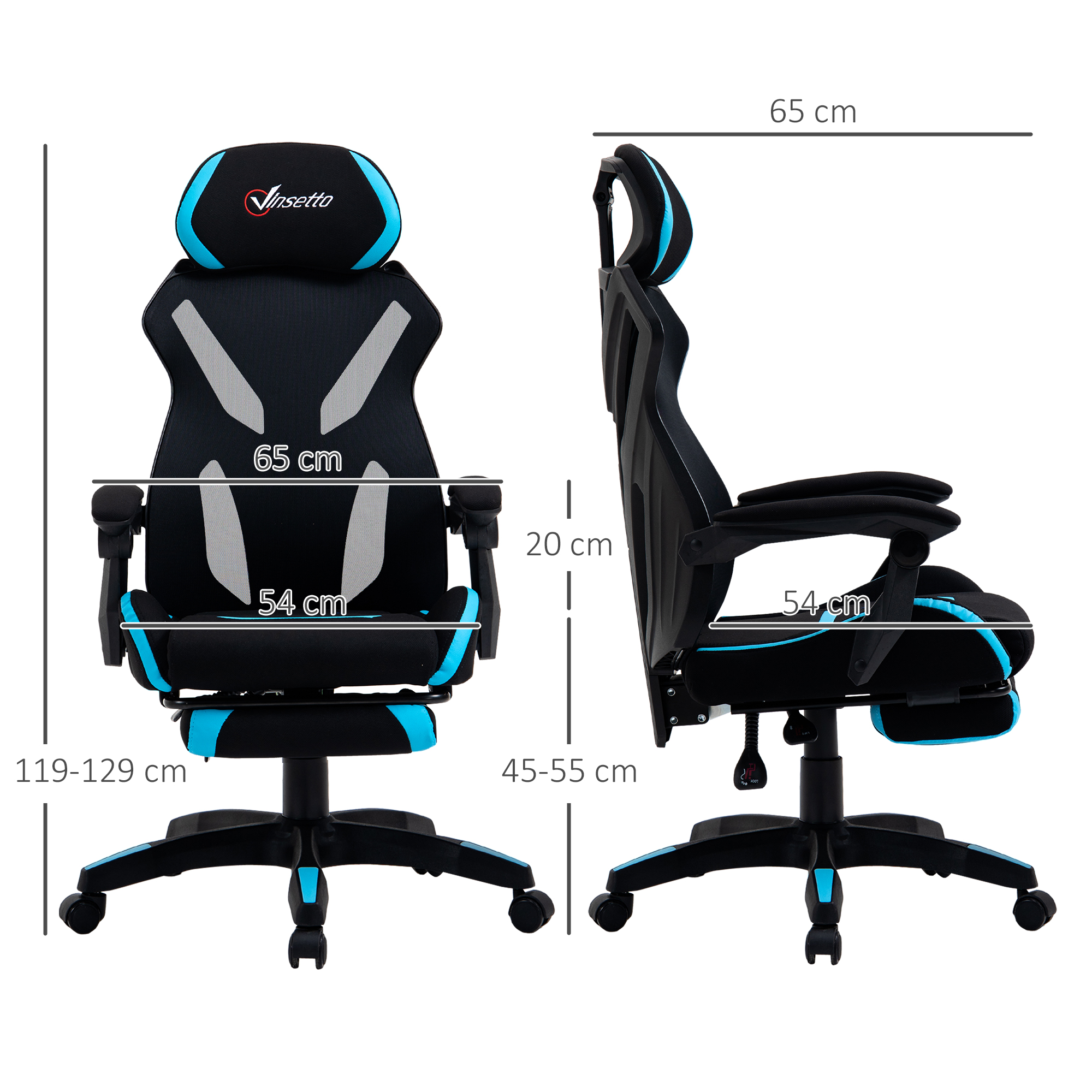Sedia da Gaming con Supporto Lombare, Sedia Ufficio Ergonomica con Altezza Regolabile in Tessuto Nero e Blu, 65x65x119-129cm