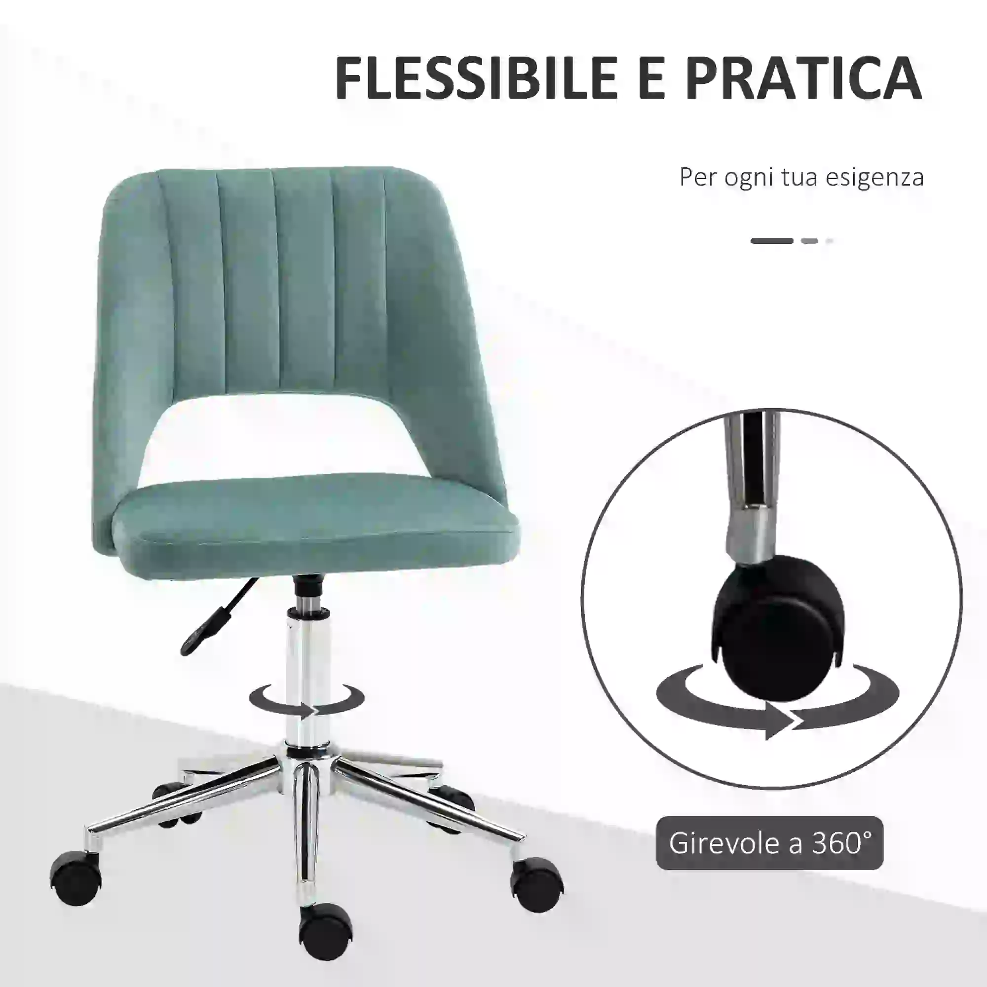 - • Sedia girevole con 5 pratiche rotelle incluse