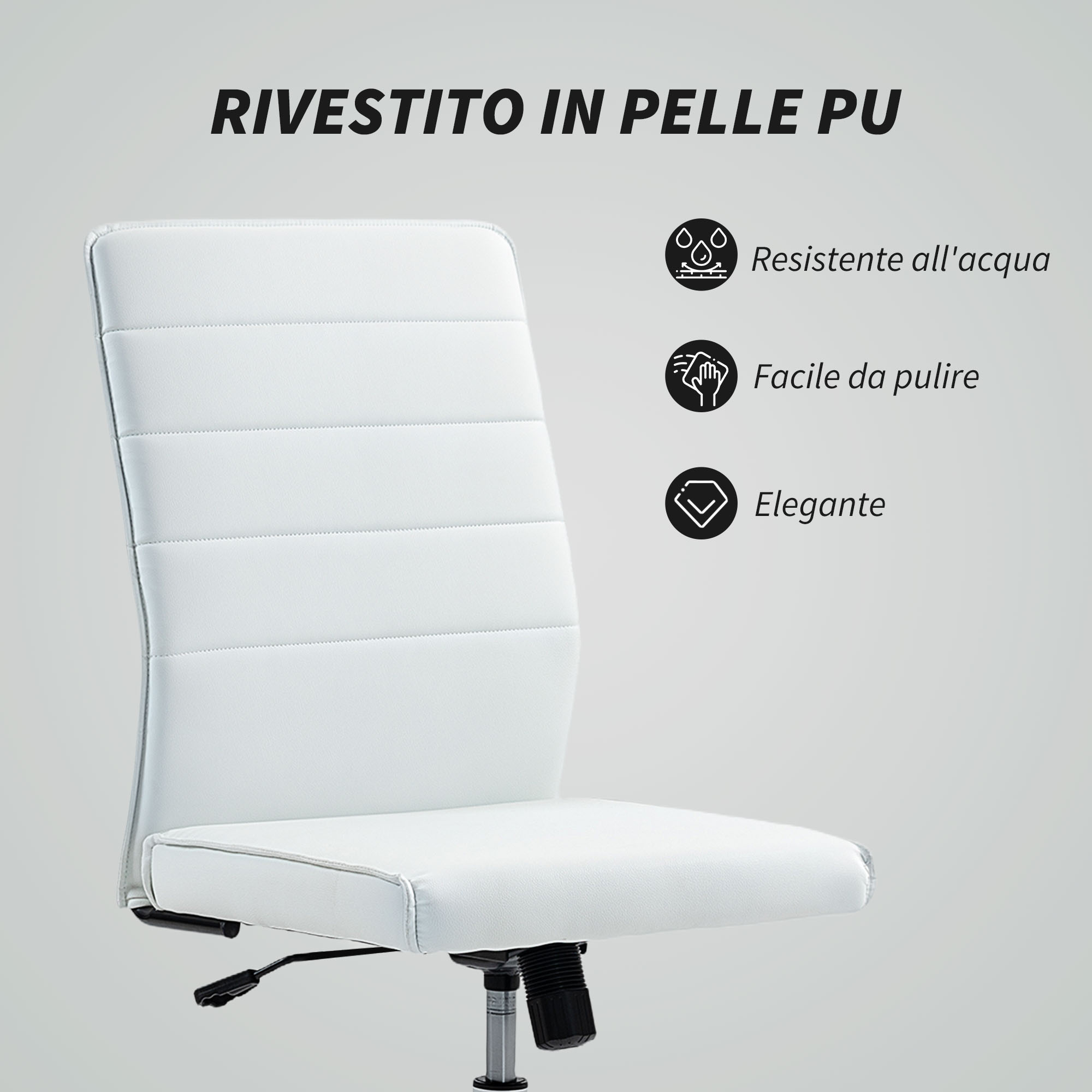 Sedia da Ufficio Ergonomica e Regolabile con Schienale Ricurvo, in Pelle PU e Acciaio, 58x53x97-107 cm, Bianco