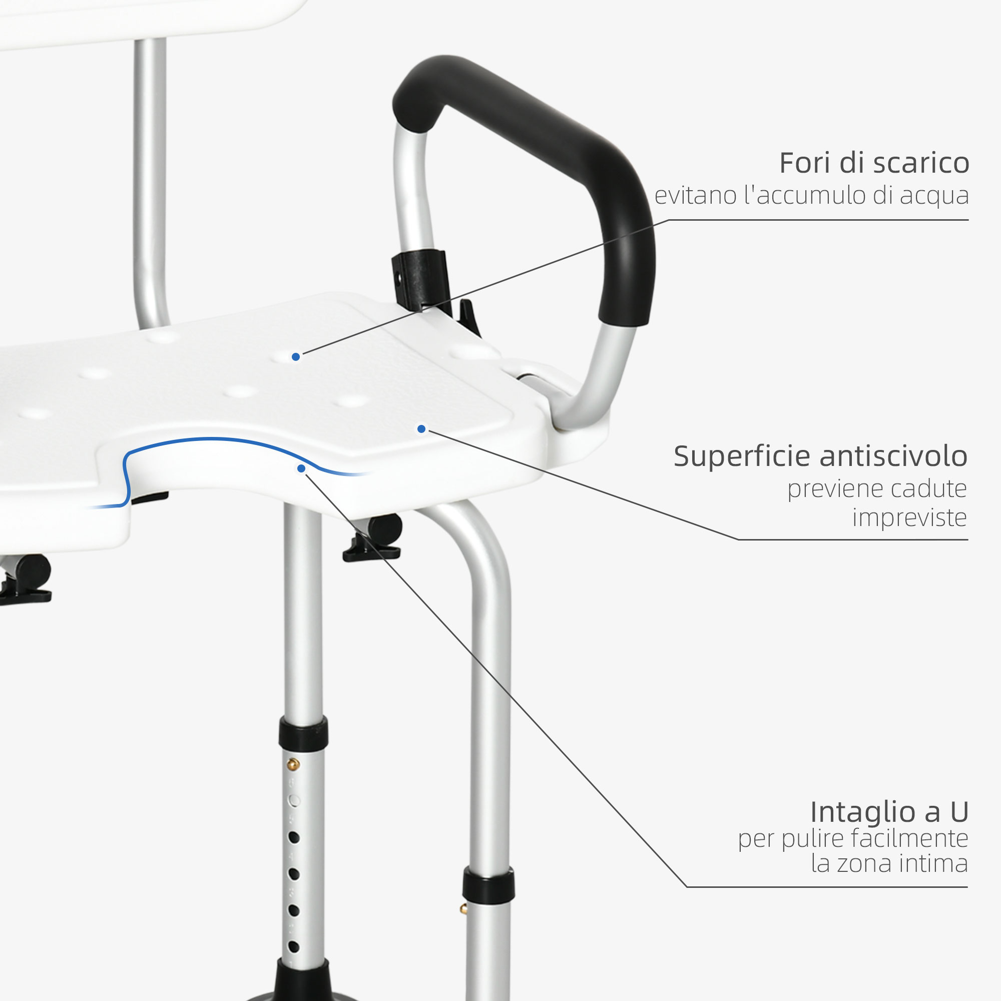 Sedia per doccia per Anziani, Disabili e Donne Incinte Imbottita con forma a U, 54x52x70-82cm, Bianco