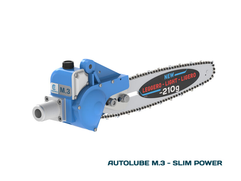 Il potatore pneumatico a catena AUTOLUBE M.3 è disponibile anche nella versione con barra carving da 8″. Estremamente versatile, può essere connesso ad aste di prolunga sia fisse, sia telescopiche. È dotato di un serbatoio per la lubrificazione automatica della catena. La velocità della catena è molto elevata e garantisce ottime prestazioni di taglio.
